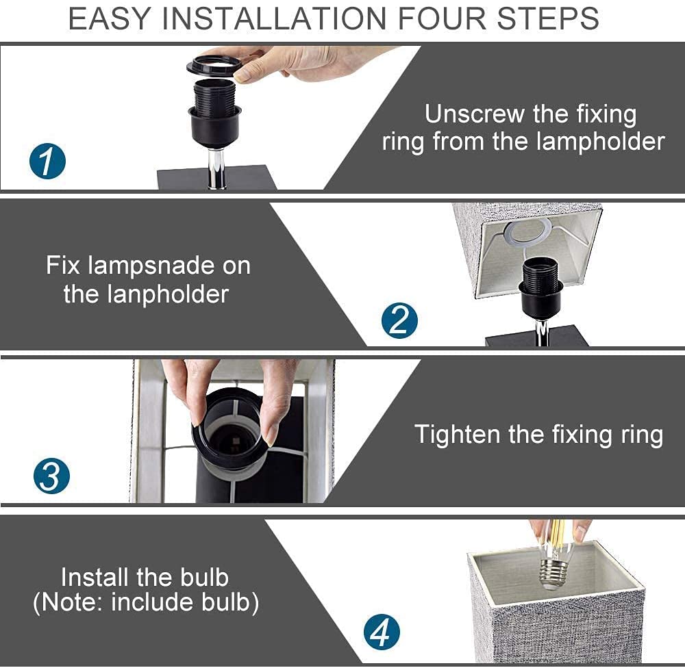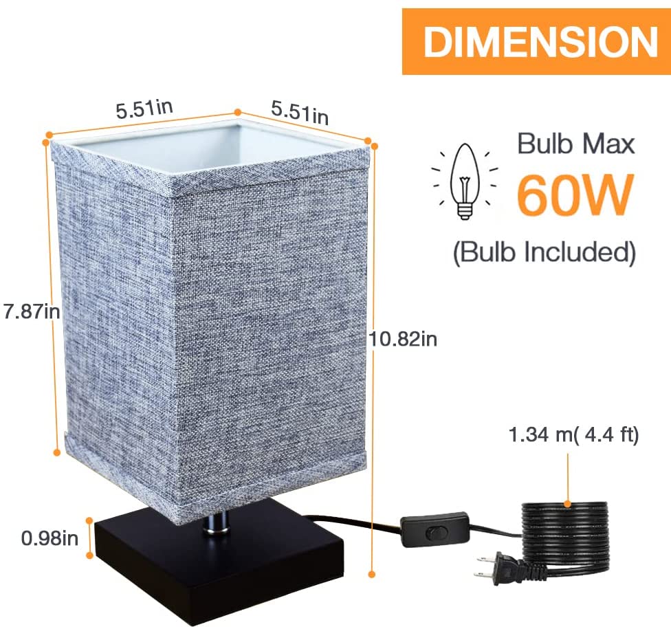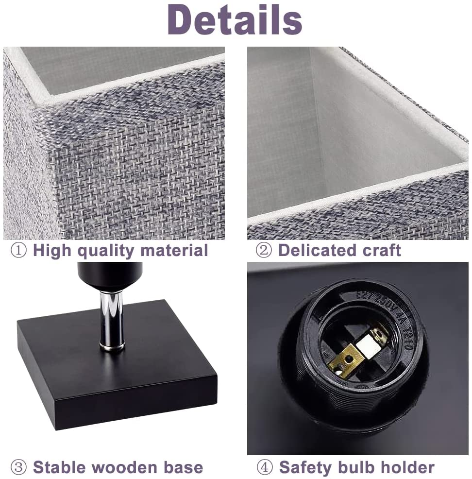 Harmaa neliönmuotoinen yöpöytävalaisin pellavakankaisella varjostimella ja massiivipuulla. Yöpöytälamppu (3000K lämmin valkoinen) makuuhuoneeseen, olohuoneeseen moderni pöytälamppu, sohvapöytä, toimisto, lapsille. (polttimo mukana)
