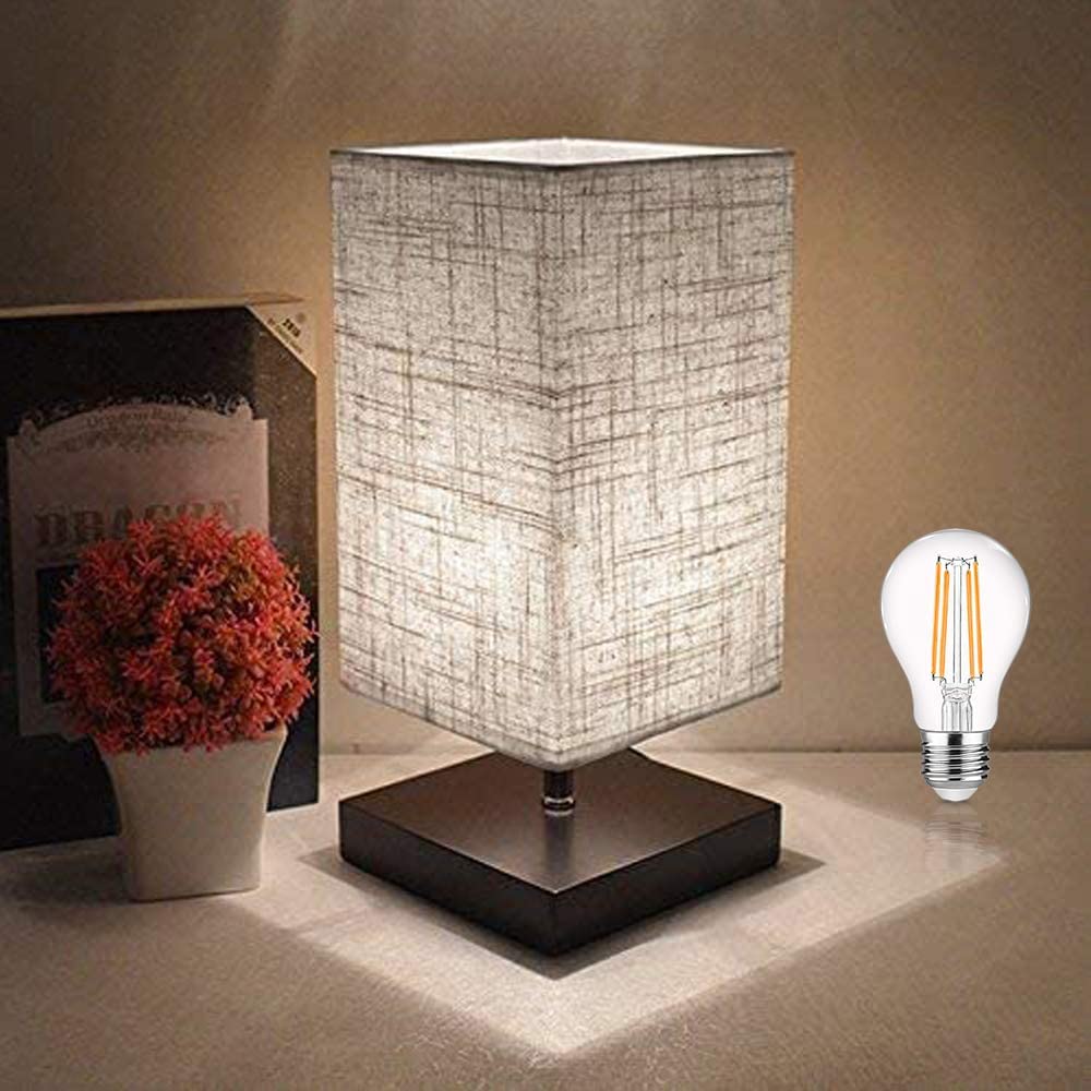 Depuley Fabric yöpöytävalaisin, neliönmuotoinen minimalistinen massiivipuinen pöytävalaisin, yöpöytävalaisin Yöpöytälamppu pellavakankaisella varjostimella