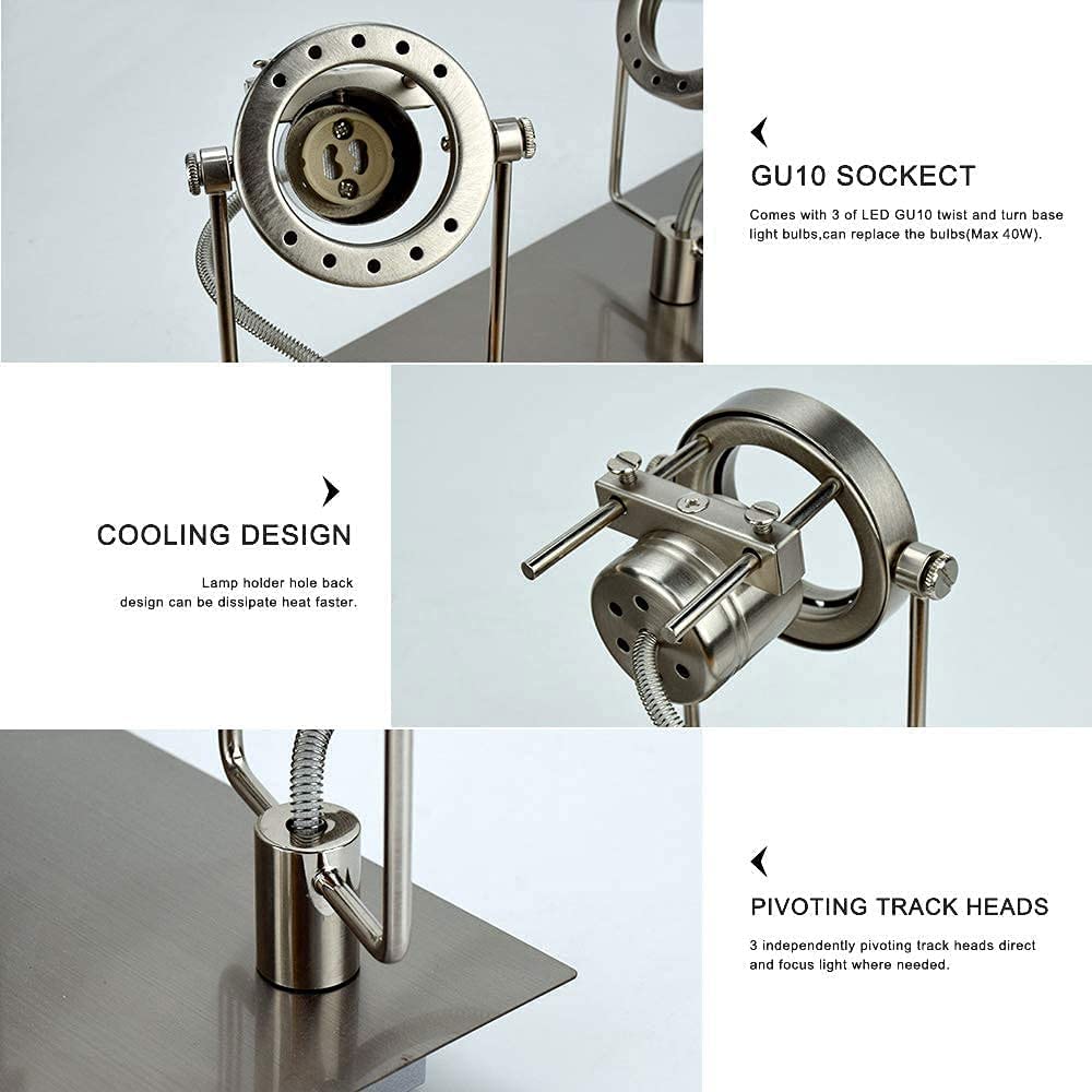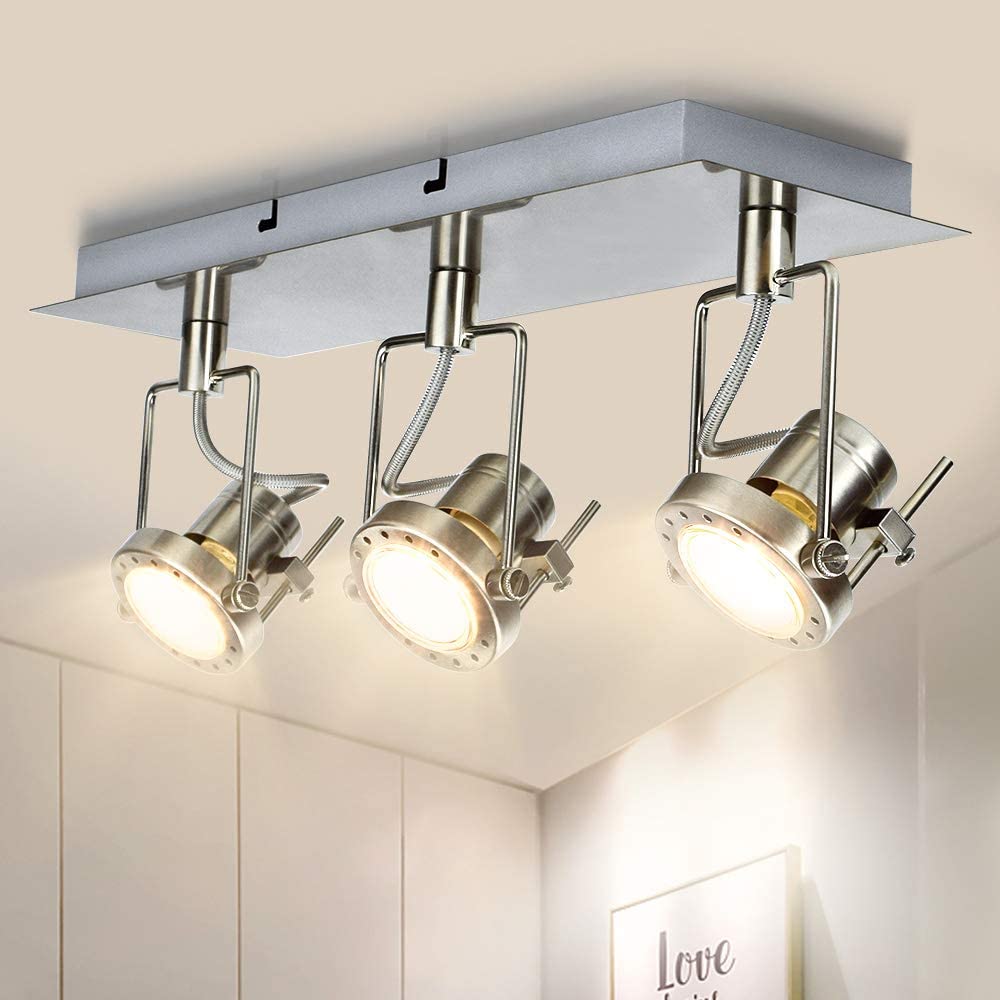 Depuley 3-valaisin kattovalaisin, moderni joustava LED-valaisin suunnattu seinävalaisin makuuhuoneeseen, olohuoneeseen, keittiöön, pelihuoneeseen, harjattu nikkeli