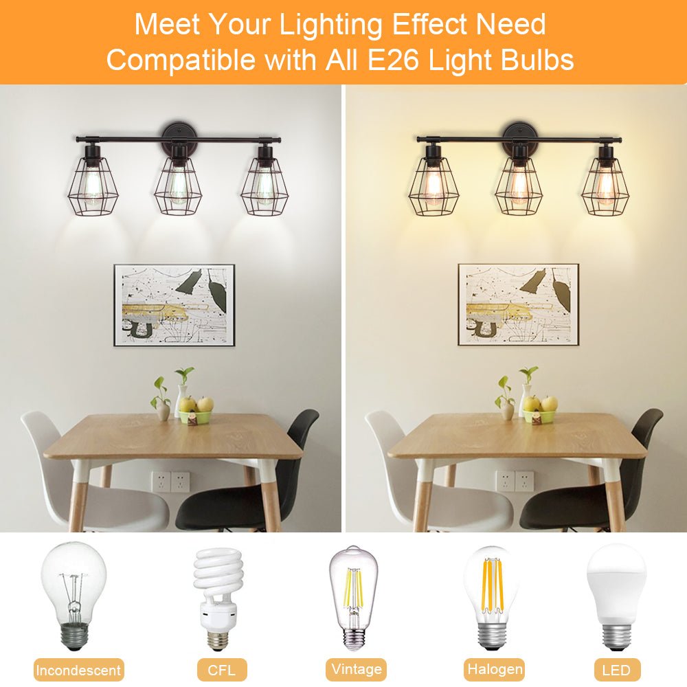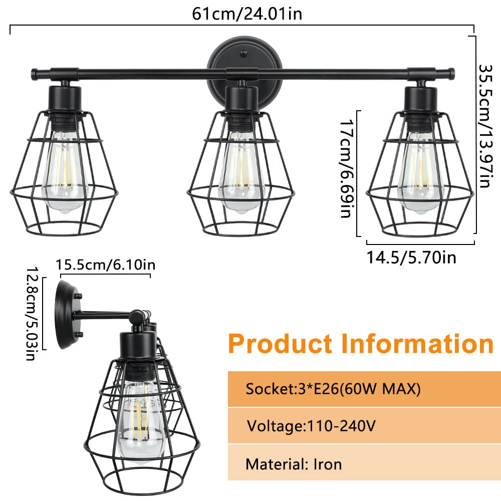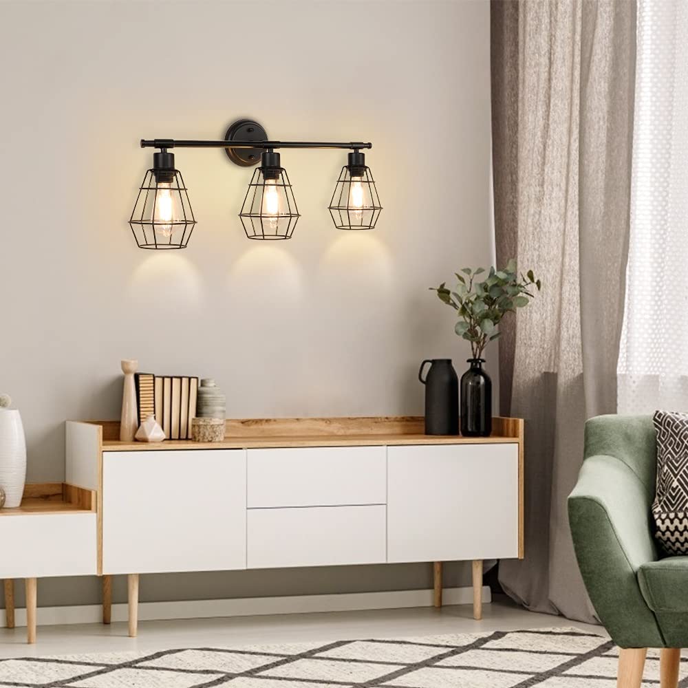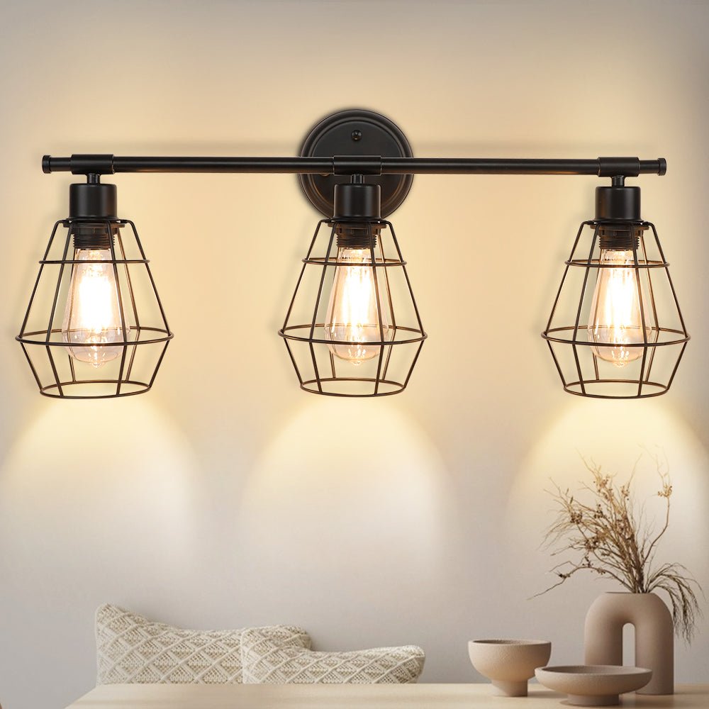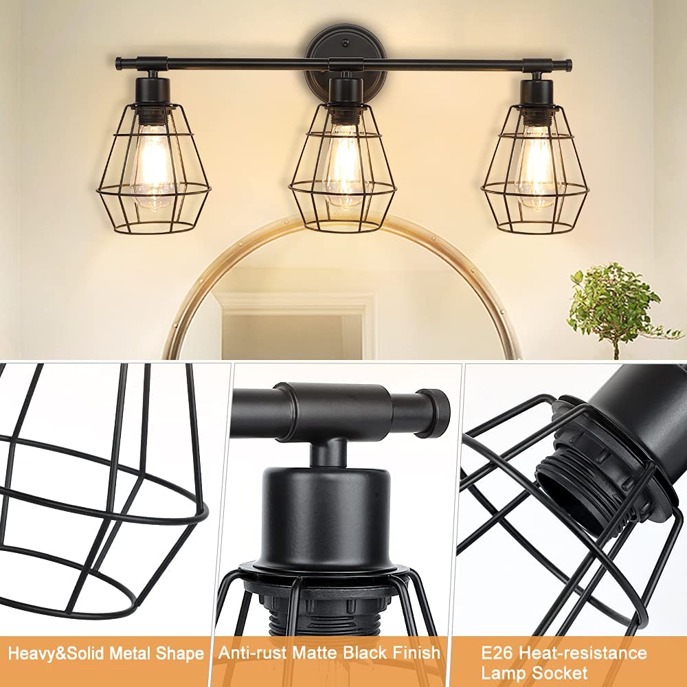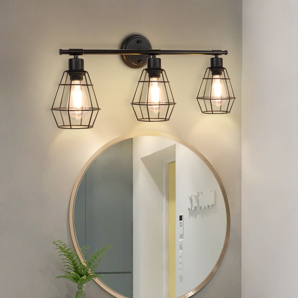 Depuley 3-kevyt teollisuuskylpyhuoneen turhamaiset valaisimet, maalaistalon kylpyhuoneen seinävalaisin, vintage-metalliset häkkivalaisimet peilikaappiin, olohuoneen makuuhuone, eteinen