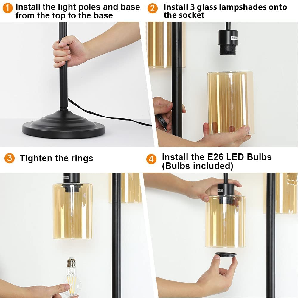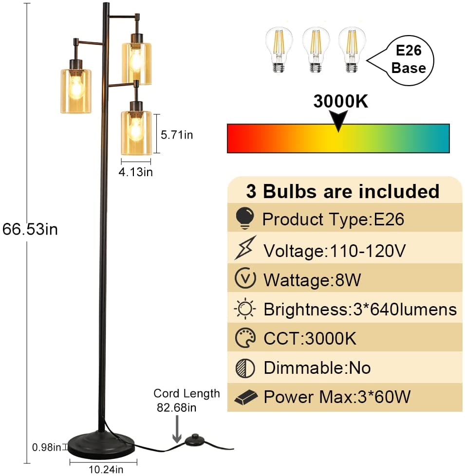 4. Ympäristöystävälliset LED-lamput: Tämä maalaistalon lattiavalaisin sisältää 3*8W E26-polttimot (max: 60W), säästää energiaa ja tarjoaa käyttömukavuutta. Korkea musta lattiavalaisin luo lämpimän ja kodikkaan tunnelman ympäristöystävällisillä ja silmiä hoitavilla lampuilla, kun luet, työskentelet ja teet muita toimintoja.
