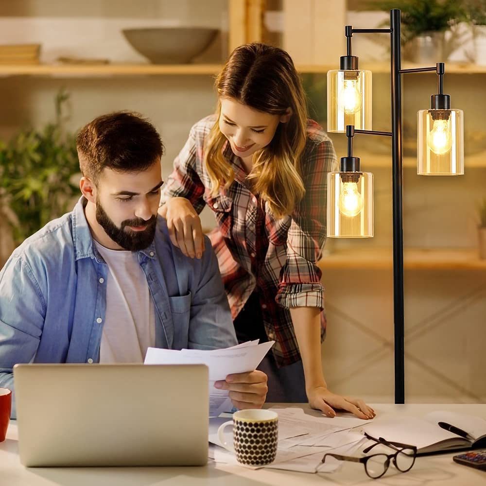 2. Vintage Amber Glass -varjostimet: Kolmella korkean läpäisevyyden kullanruskealla lasivarjostimella tämä korkea seisova valaisin luo upeaa hajavaloa ja tuo sinulle romanttisen valaistuskokemuksen. Paksumpi ja kovempi lasimateriaali, joka estää sen rikkoutumisen. Tämän vintage-lattiavalaisimen valossa voit nauttia mukavasta tunnelmasta perheesi ja ystäviesi kanssa.