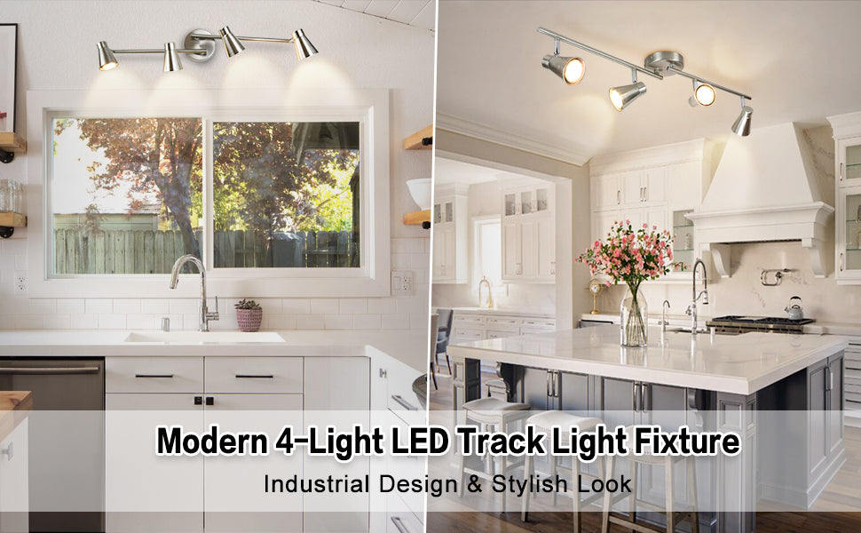 DINGLILIGHTING kattoon 4-valaisin uppoasennettava kattokiskovalaisin, suunnattu kohdevalo keittiöön/makuuhuoneeseen/ruokailuhuoneeseen/toimistoon, harjattu nikkeli, mukana 4 x GU10-polttimot.