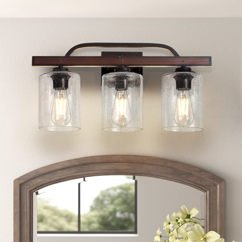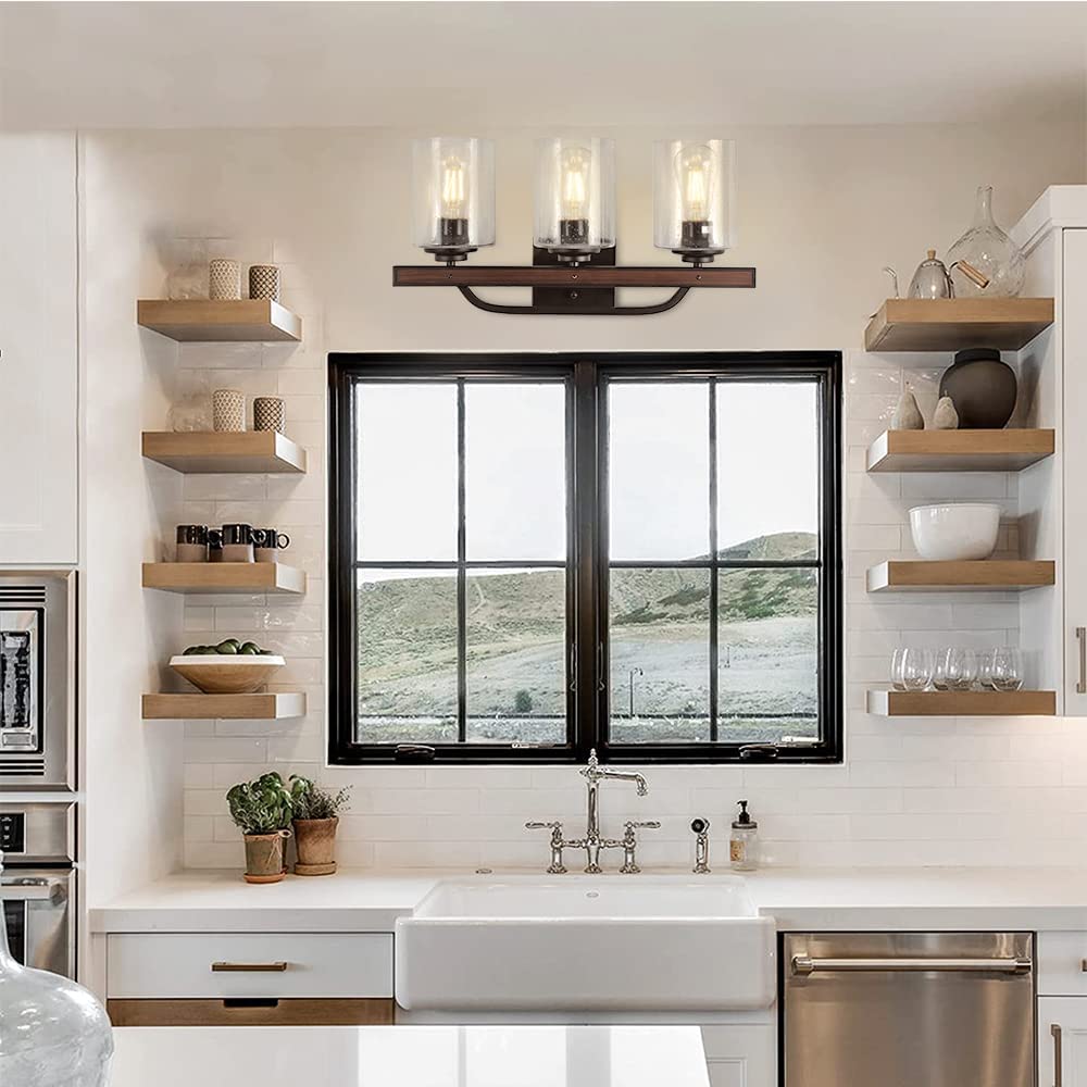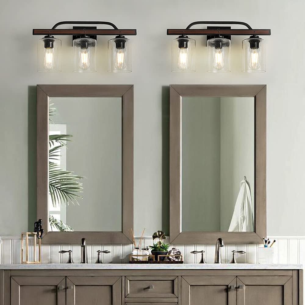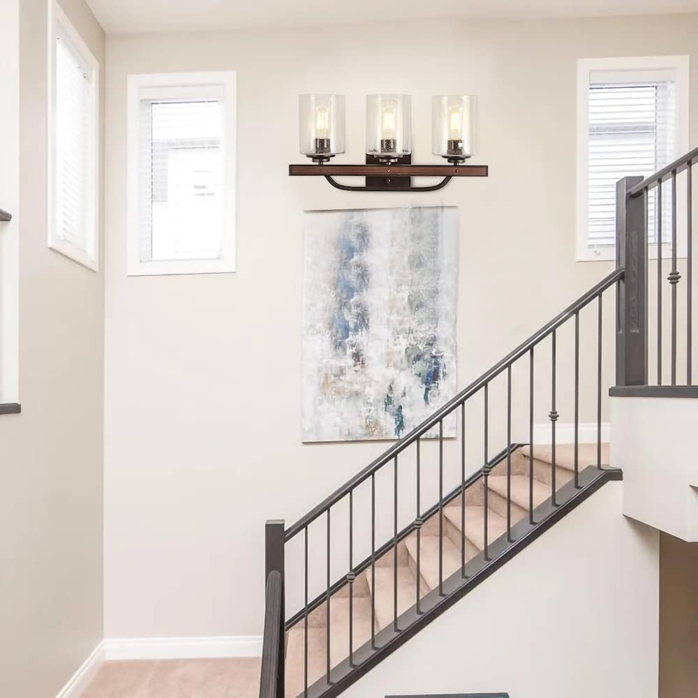 DINGLILIGHTING Maalaismaiset turhamaiset valaisimet, 3 valon maalaistalon kylpyhuoneen valaisimet kylvetyllä lasivarjostimella, teollisuuden vintage-seinävalaisimet, peilin päällä oleva lamppu kylpyhuoneen käytävälle Makuuhuoneen olohuoneeseen