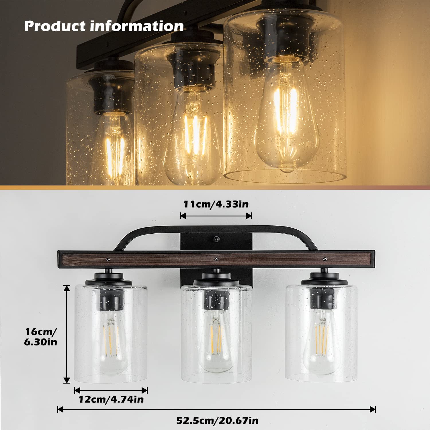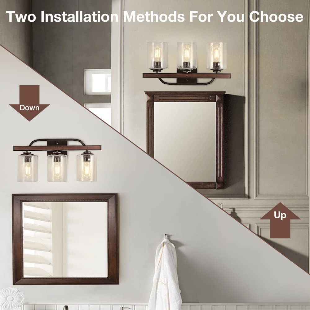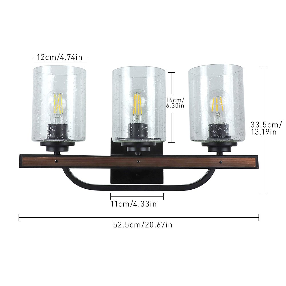 DINGLILIGHTING Maalaismaiset turhamaiset valaisimet, 3 valon maalaistalon kylpyhuoneen valaisimet kylvetyllä lasivarjostimella, teollisuuden vintage-seinävalaisimet, peilin päällä oleva lamppu kylpyhuoneen käytävälle Makuuhuoneen olohuoneeseen