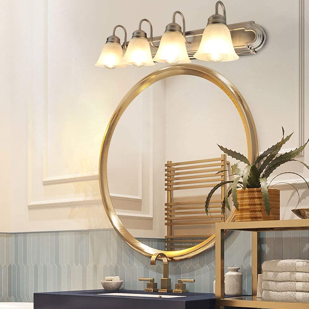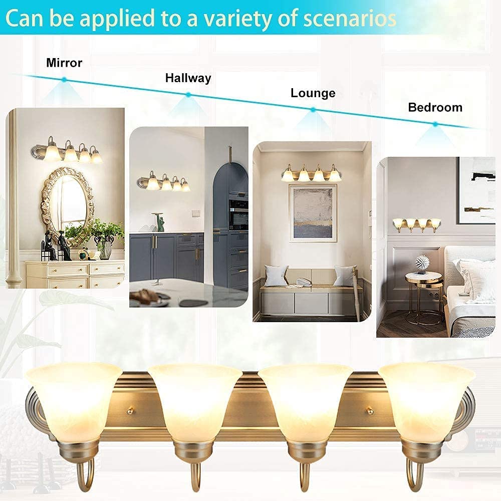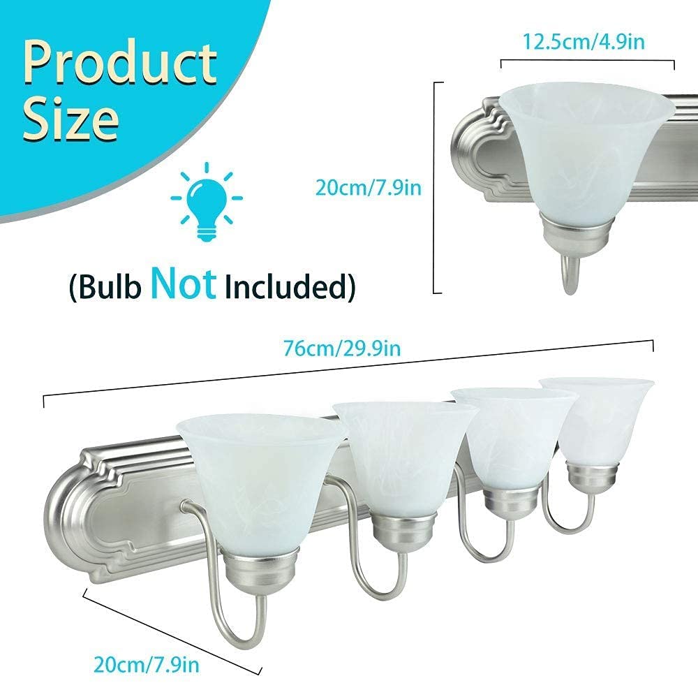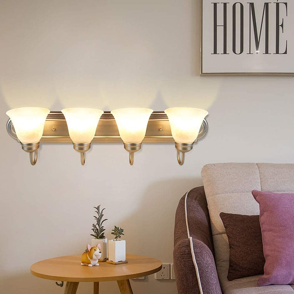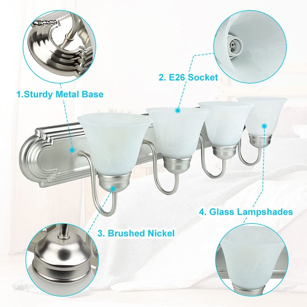 - Classic & Elegant: Tämä klassinen 4-valoninen kylpyhuoneen pesuallasseinälamppu on katseenvangitsija lisäys mihin tahansa pesualtaan tai pesualtaan.