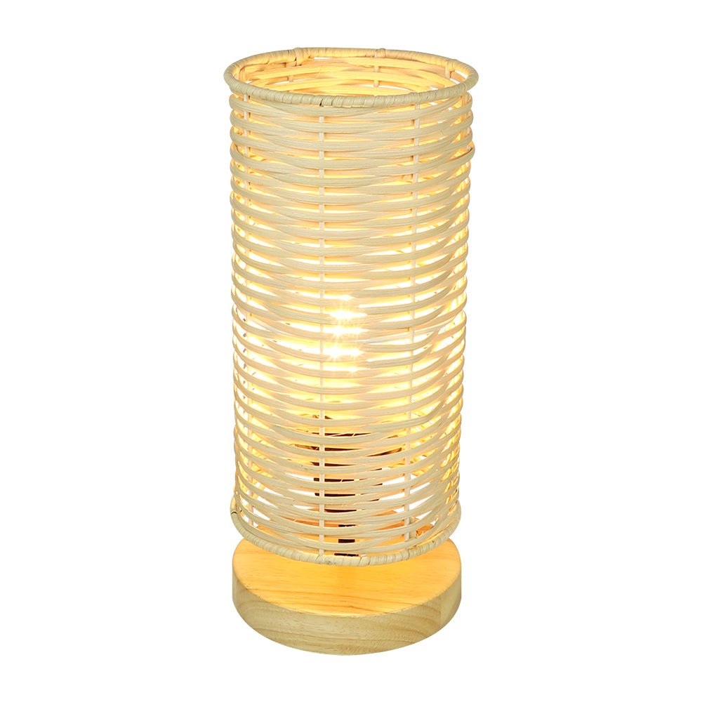 DINGLILIGHTING Yöpöytävalaisin, yksinkertainen LED-pöytävalaisin Kumipuuinen yöpöytälamppu pyöreällä rottinkivarjostimella