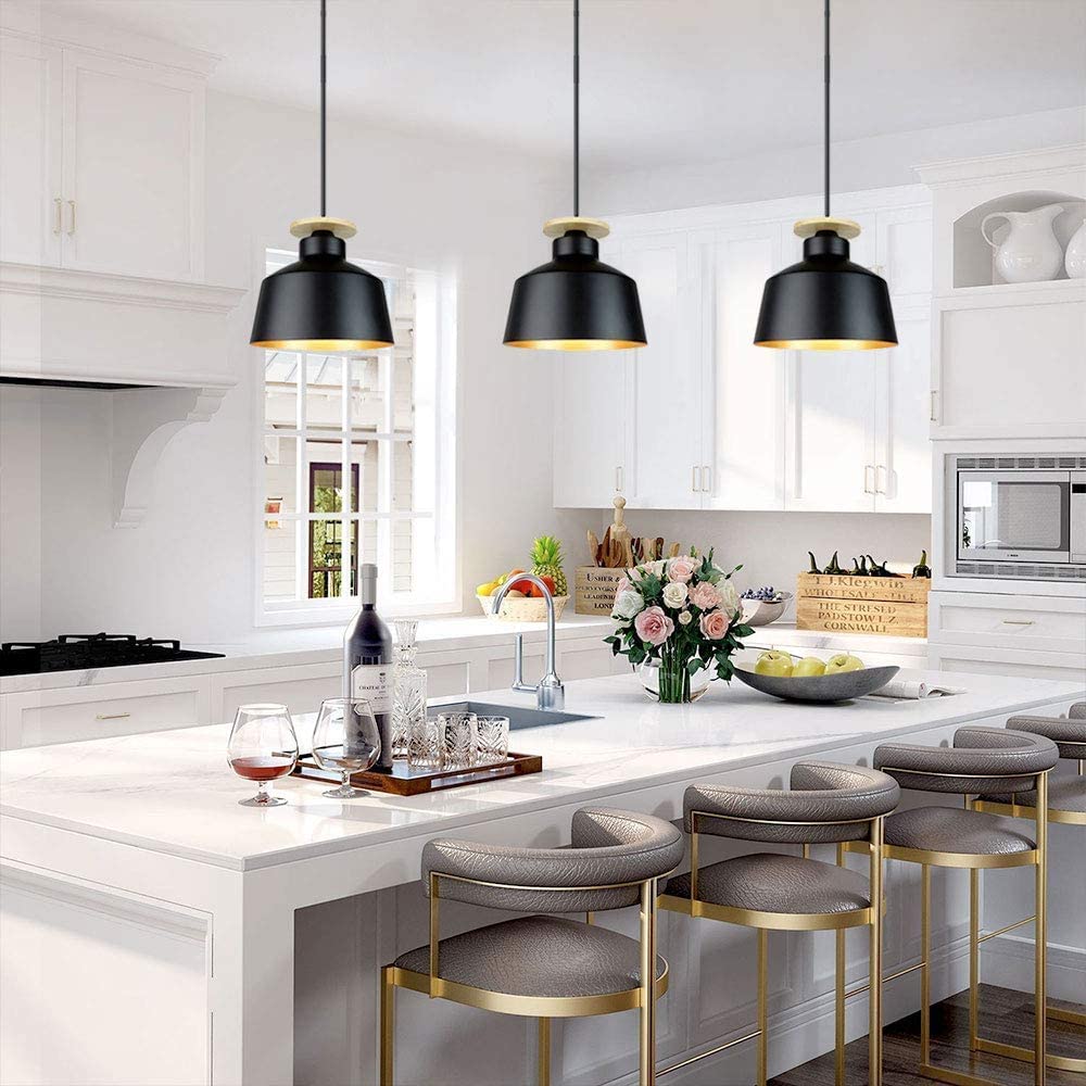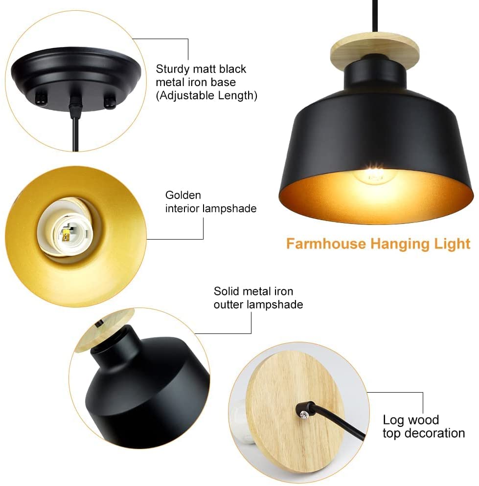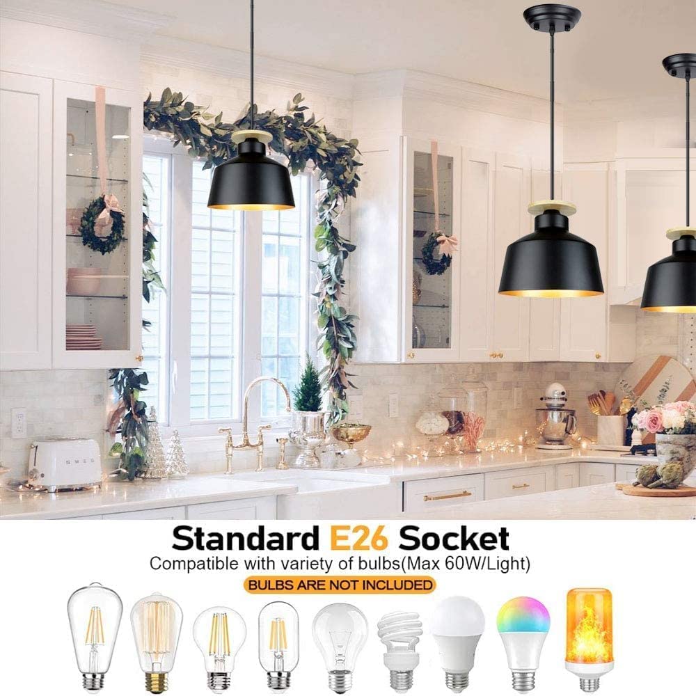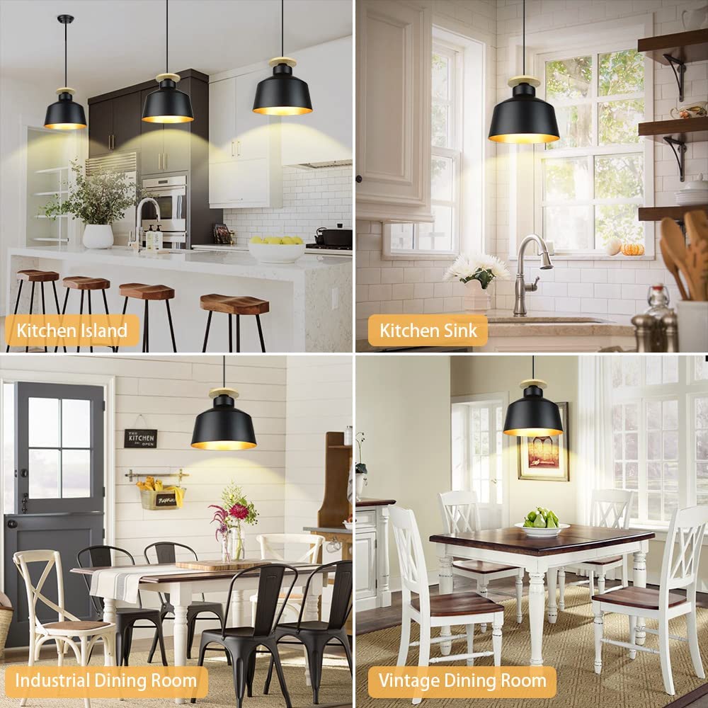 DINGLILIGHTING Teollinen 8 tuuman maalaistalo musta metalliriippuva kattolamppu, vintage säädettävä riippuvalaistus keittiösaaren ruokasaliin