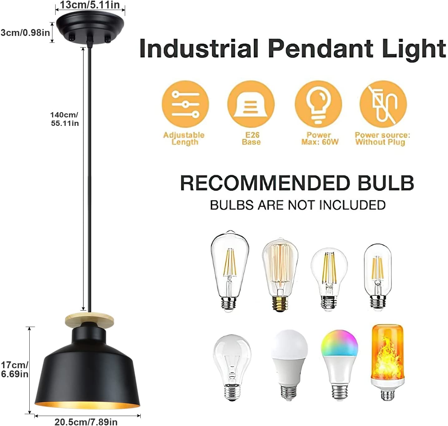 Depuley teollisuusriippuvalaisin, maalaistalon musta metalli riippuva kattolamppu, vintage kattokruunu 7,9 tuumaa säädettävä riippuvalaisin