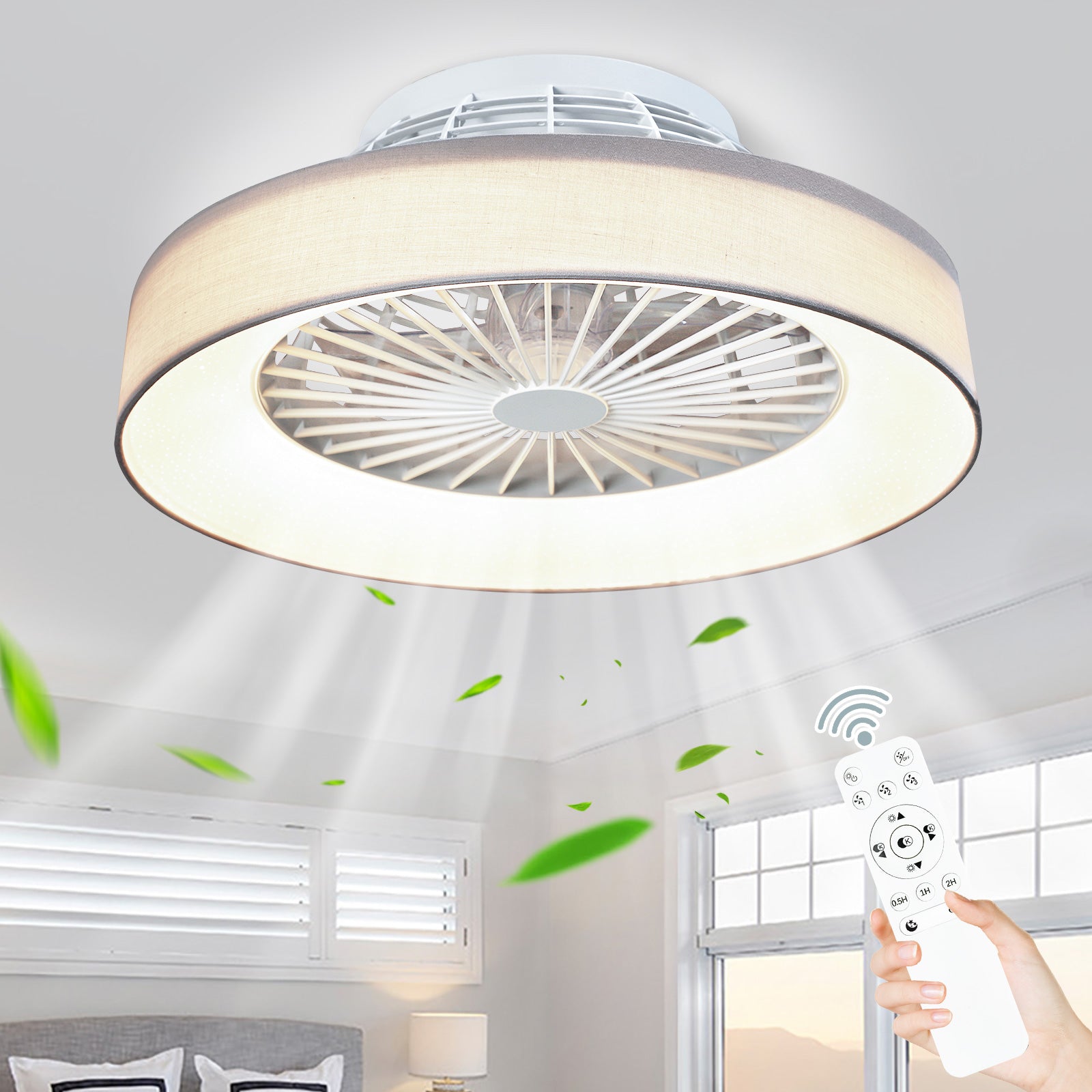 Depuley uppoasennettava kattotuuletin LED-valoilla - 18,5" terätön kattotuuletin kaukosäätimellä, 3 väriä himmennettävä LED, 3 nopeutta, 5-lapainen umpinainen kattotuuletin valolla olohuoneeseen, maku