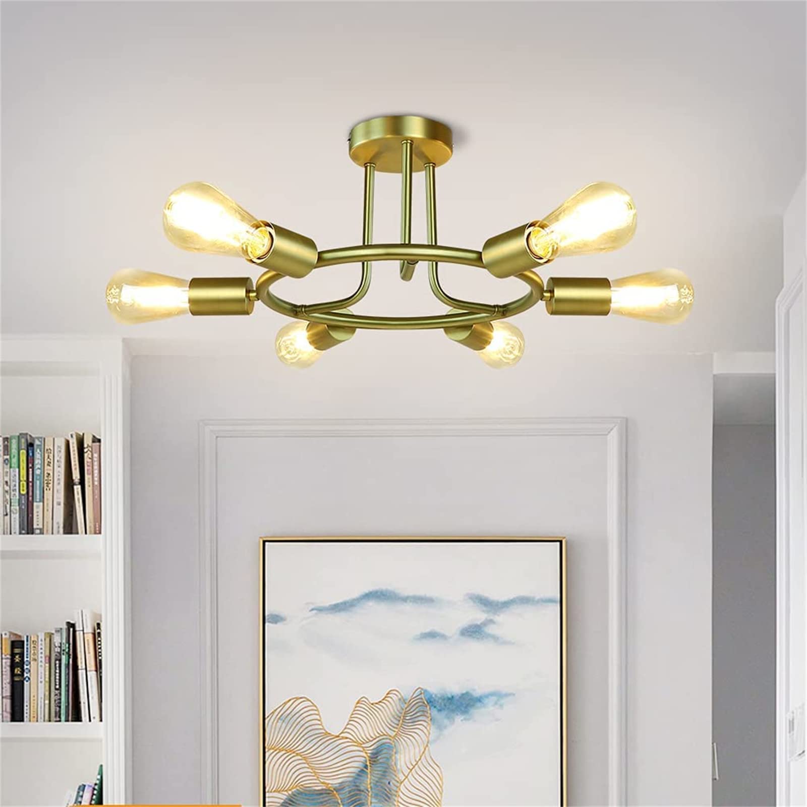 DLLT 6 valon kultainen kattokruunu, kultainen kattovalaisin, maalaistalon vaunun pyörän kattokruunu, vuosisadan puolivälin riippuvalaisin ruokasaliin, keittiösaari, olohuone, makuuhuone
