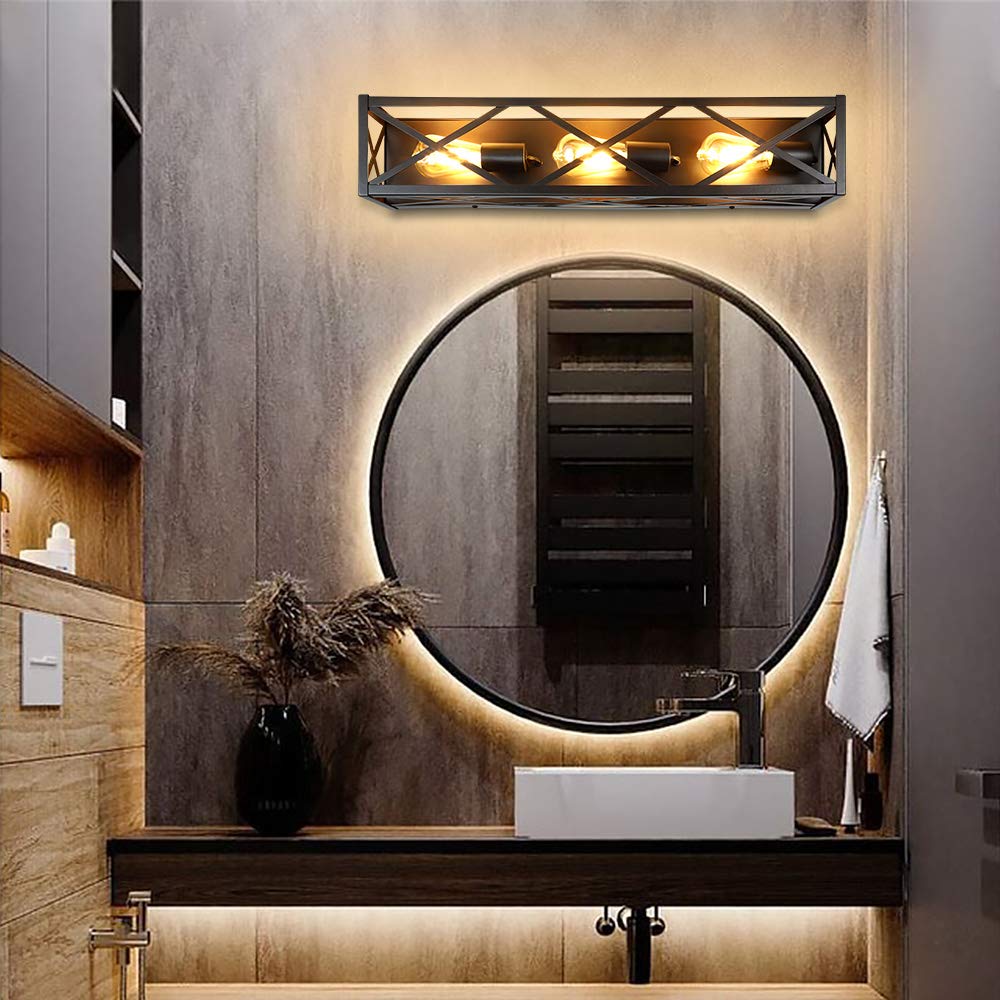 DINGLILIGHTING Kylpyhuoneen seinävalaisimet, 3 valon vintageruskeat meikkivalot, maalaistalon seinälamput, teollisuusseinävalaisimet