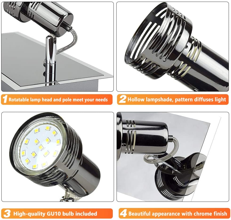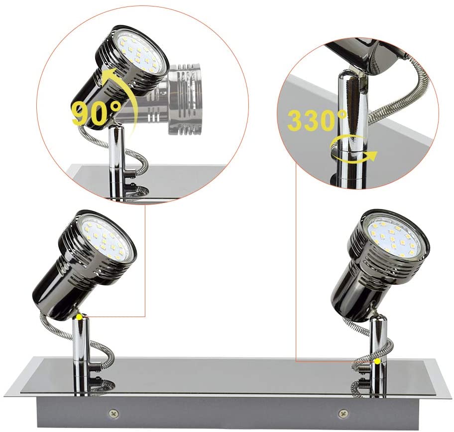 DINGLILIGHTING 2-suuntaan pyöritettävät neliömäiset LED-kattovalot, 3W GU10-polttimot Lämmin valkoinen 3000K Chrome Finish keittiön kattovalaisimet makuuhuoneeseen, olohuoneeseen, LED-lamput mukana