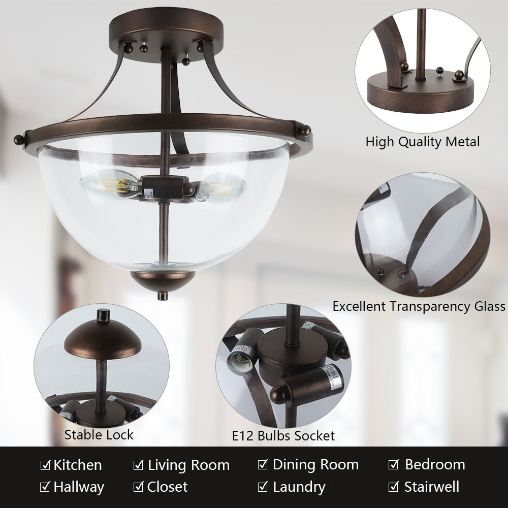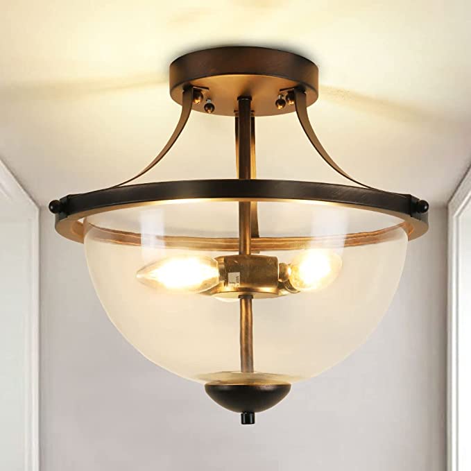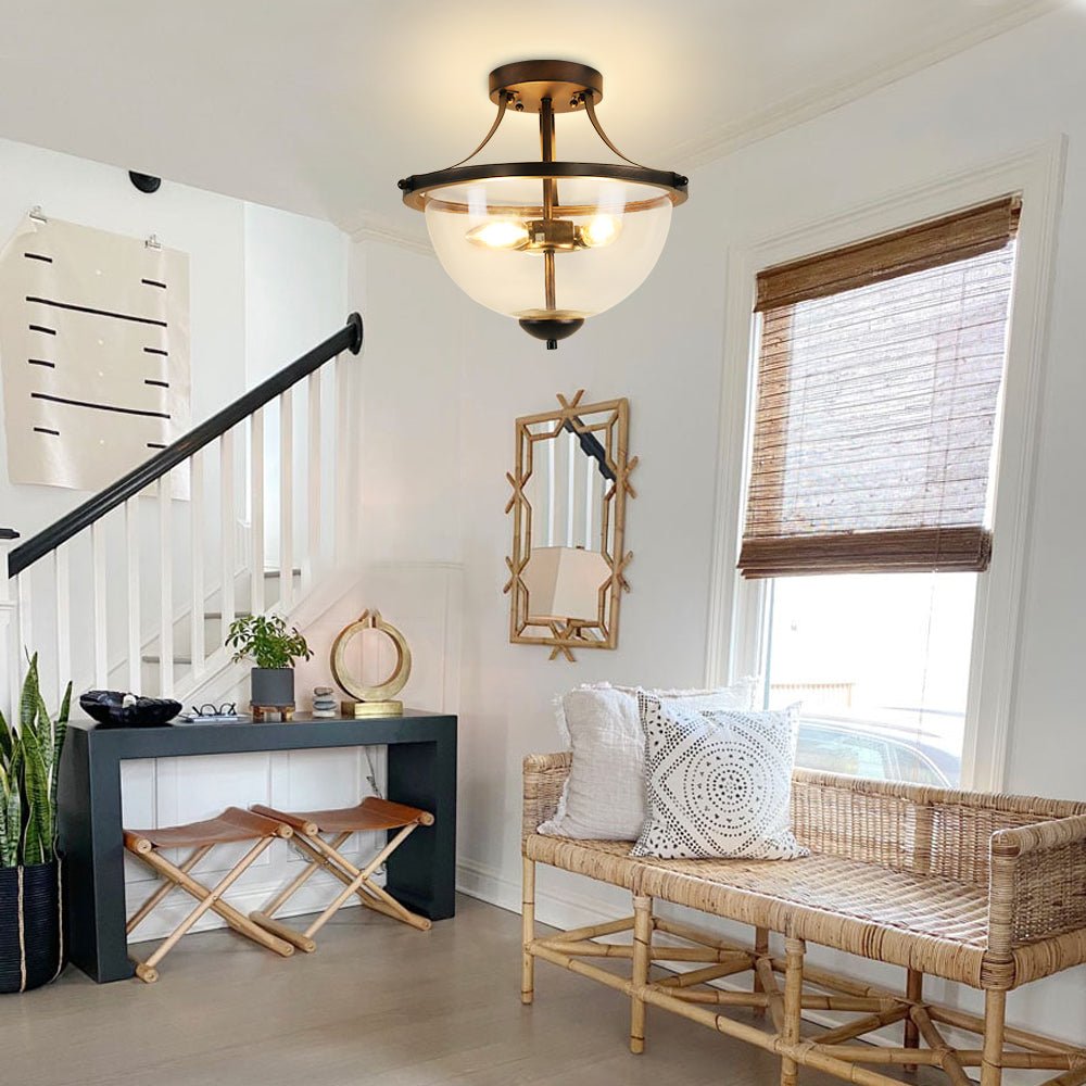 Teollinen puoliksi upotettava kattovalaisin, 15 tuuman kirkas lasivarjostin kattovalaisin, 3 valon maalaistalon valaistus sisäänkäynnille käytävälle keittiö makuuhuone ruokailuhuone, tummanruskea