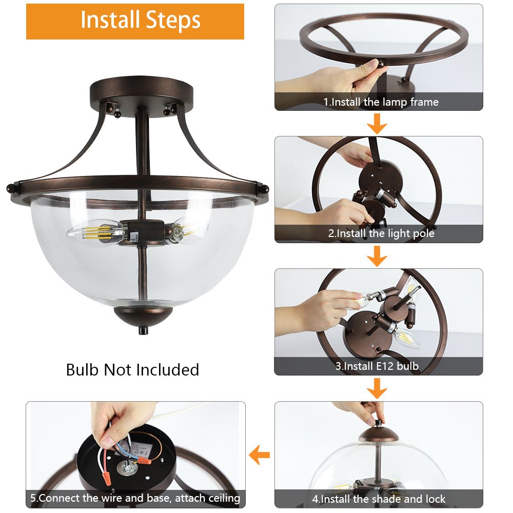 Depuley Industrial Puolitasoinen kattovalaisin, 15 tuuman kirkas lasivarjostin kattovalaisin, 3 valon maalaistalon valaistus