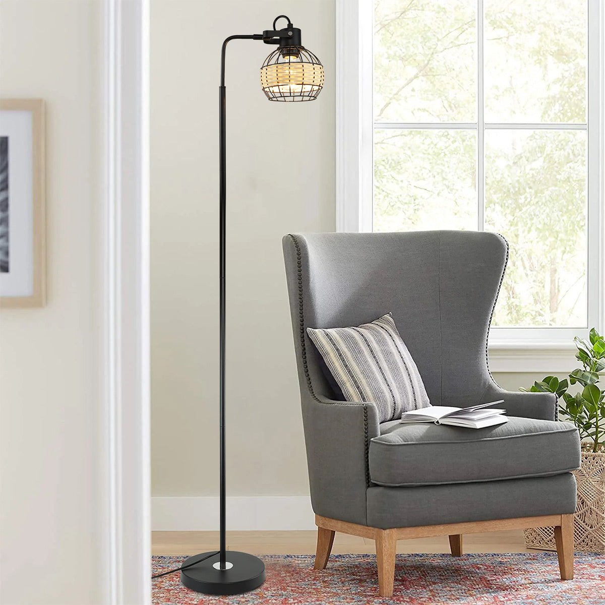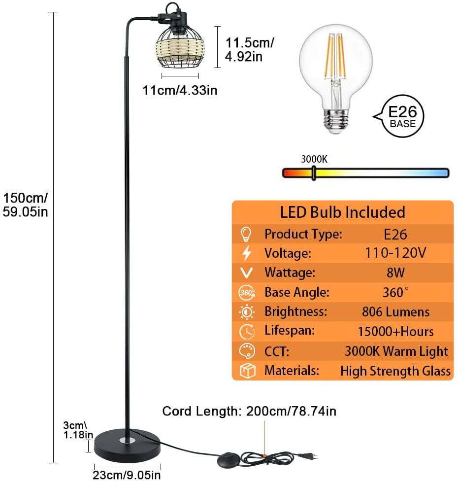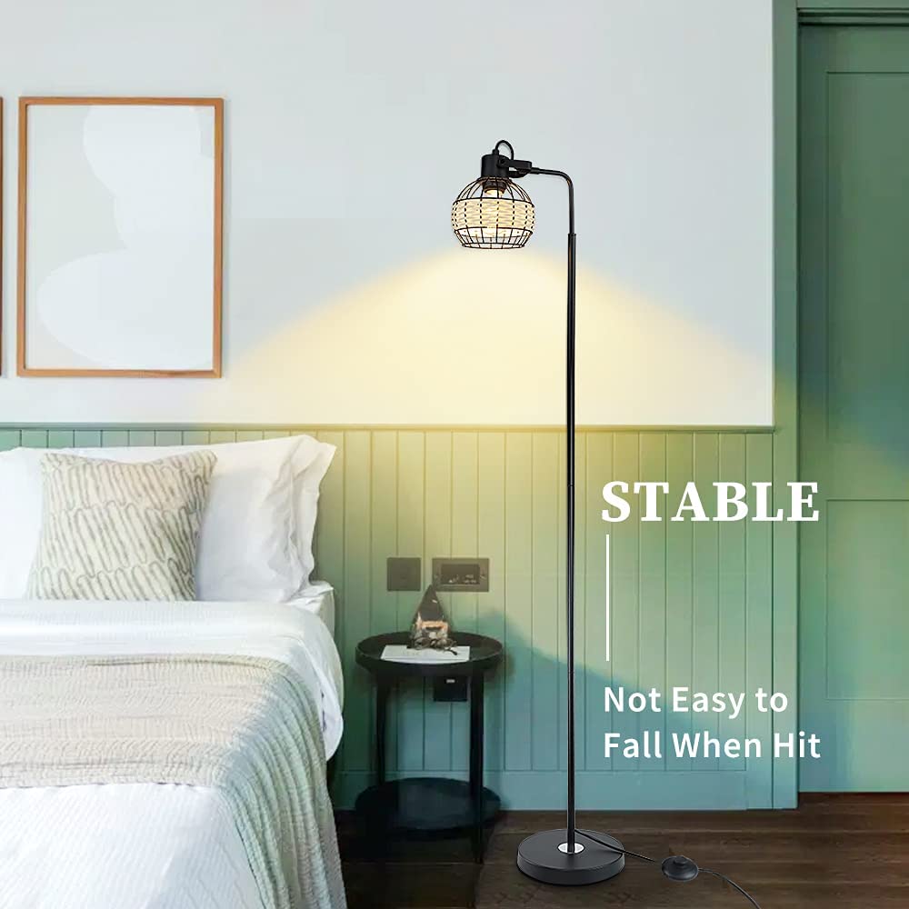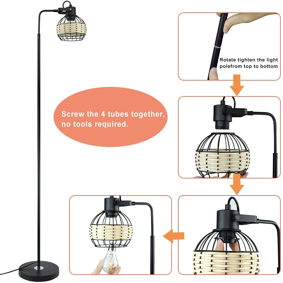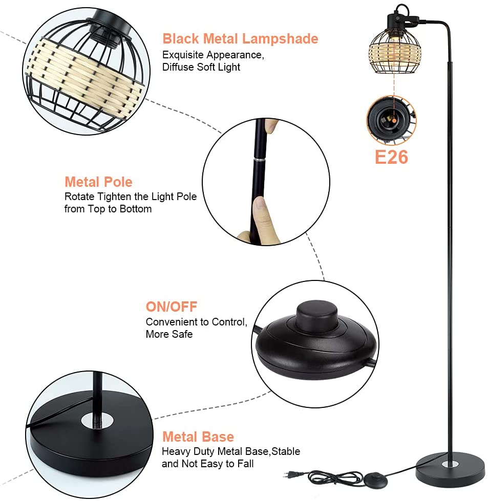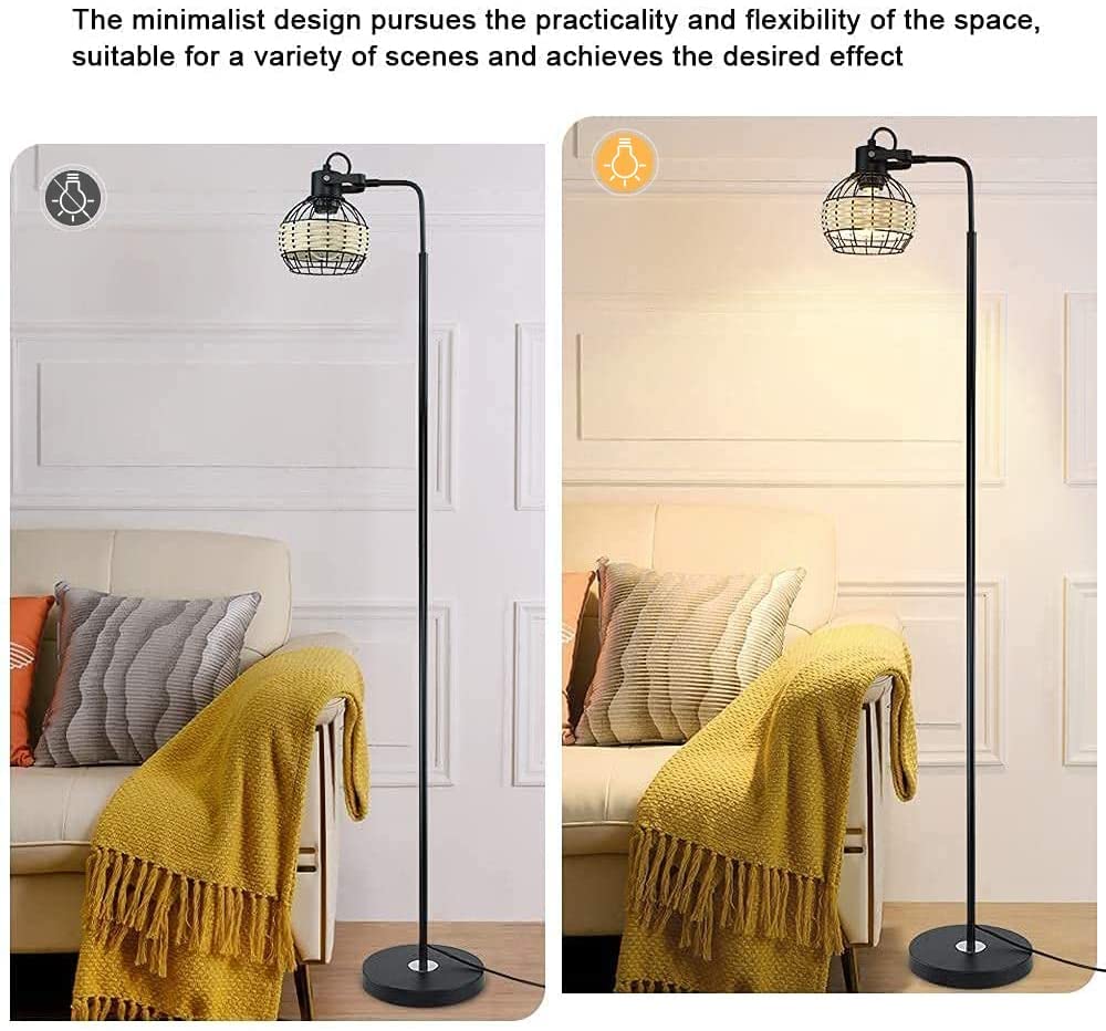 Depuley LED-lattiavalaisin, säädettävä kantavalaisin raskasmetallipohjaisella, maalaistalon korkeat rottinkilattiavalaisimet lukuvalaistus