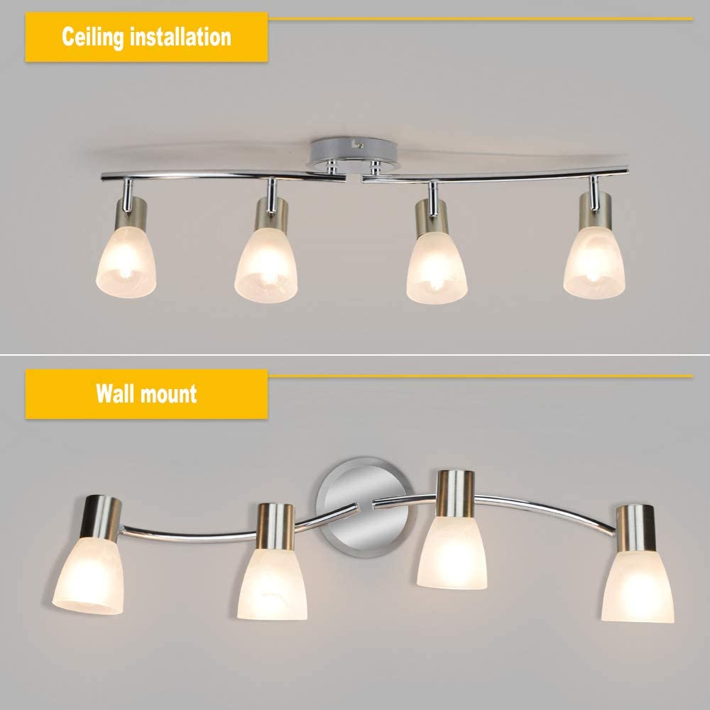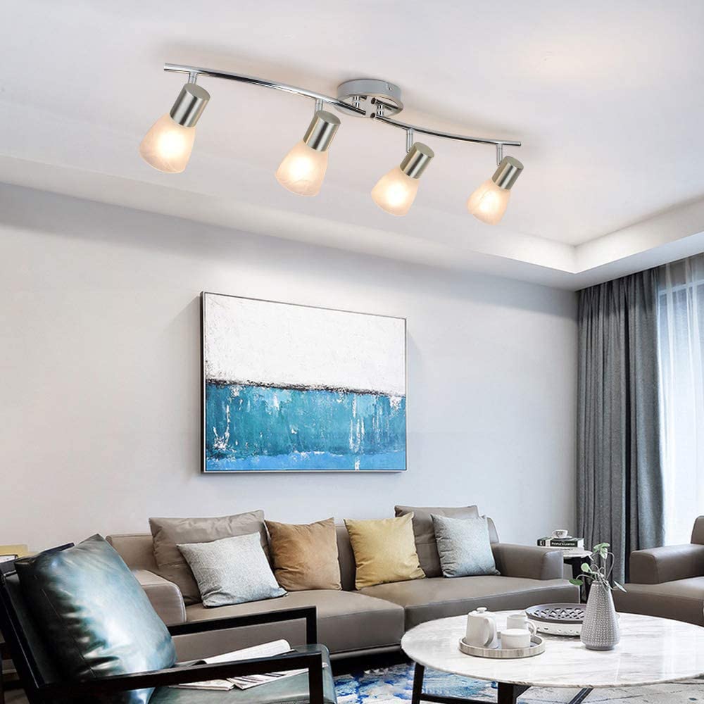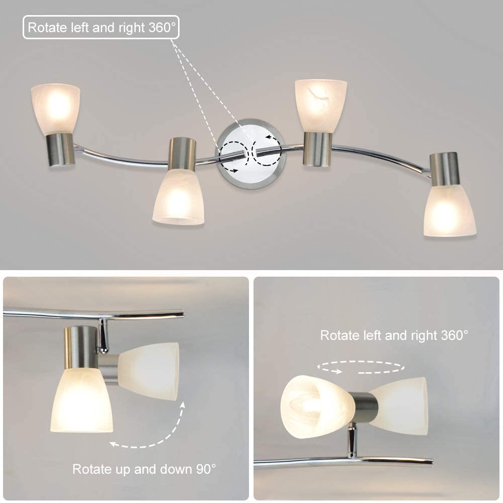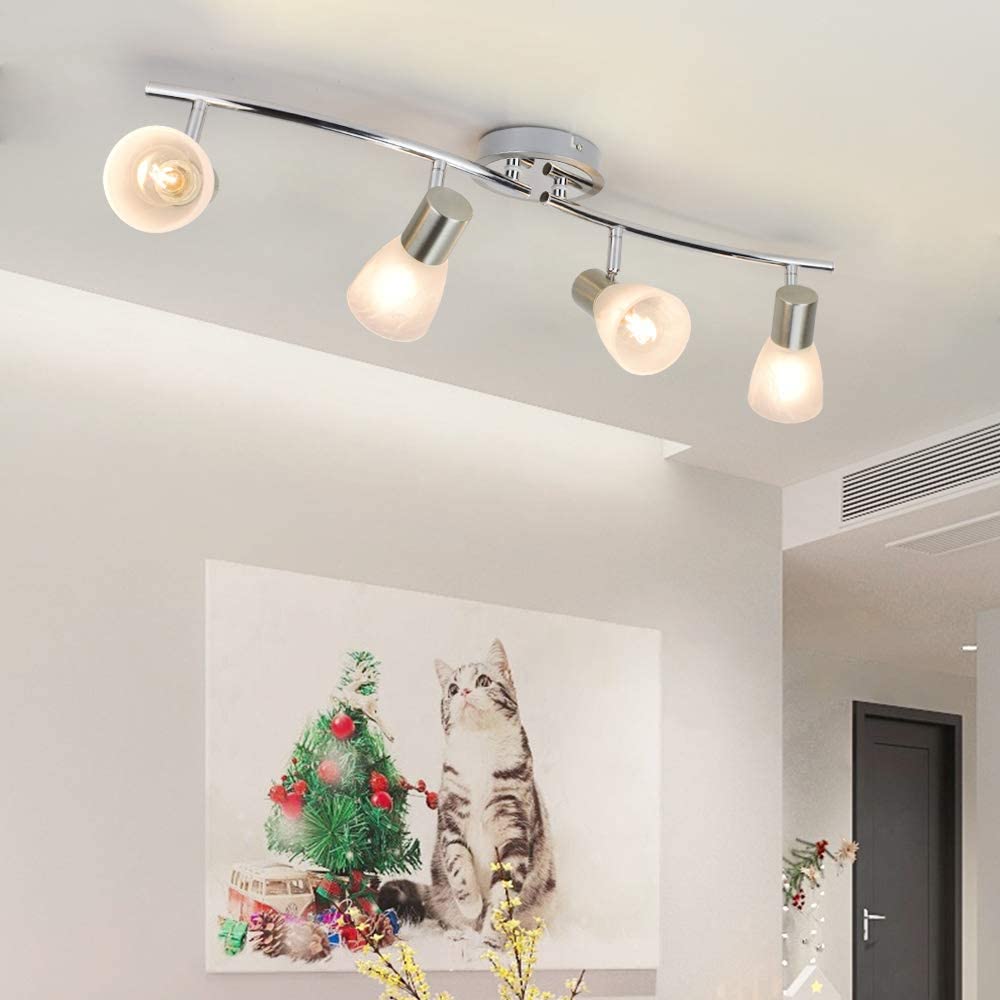 Depuley neljään suuntaan kääntyvä LED-kattovalaisin, säädettävä kääntyvä spottipalkki, keittiön kattovalaisin kuvioidulla lasivarjostimella, ihanteellinen keittiöön, olohuoneeseen, makuuhuoneeseen (ei