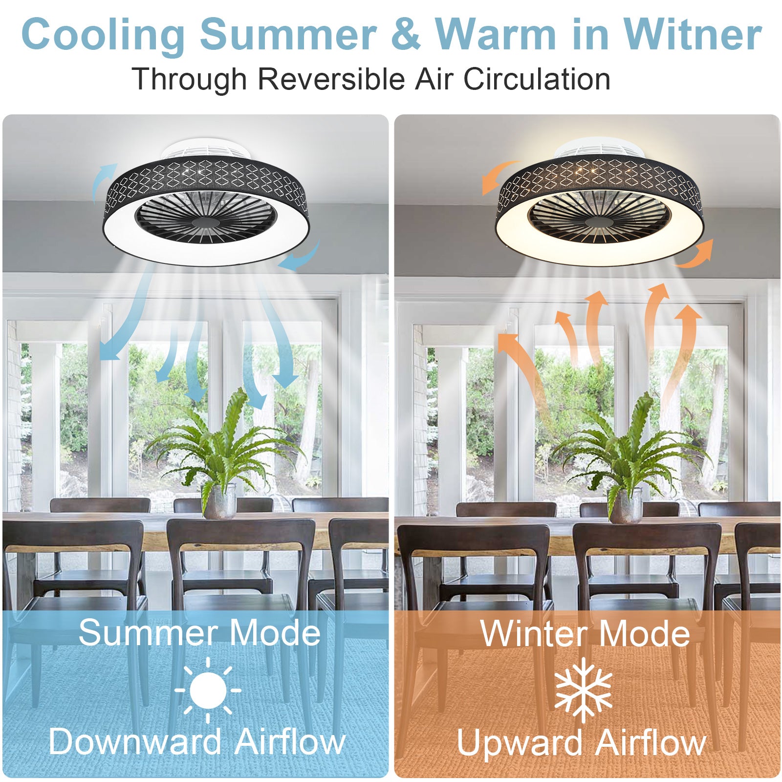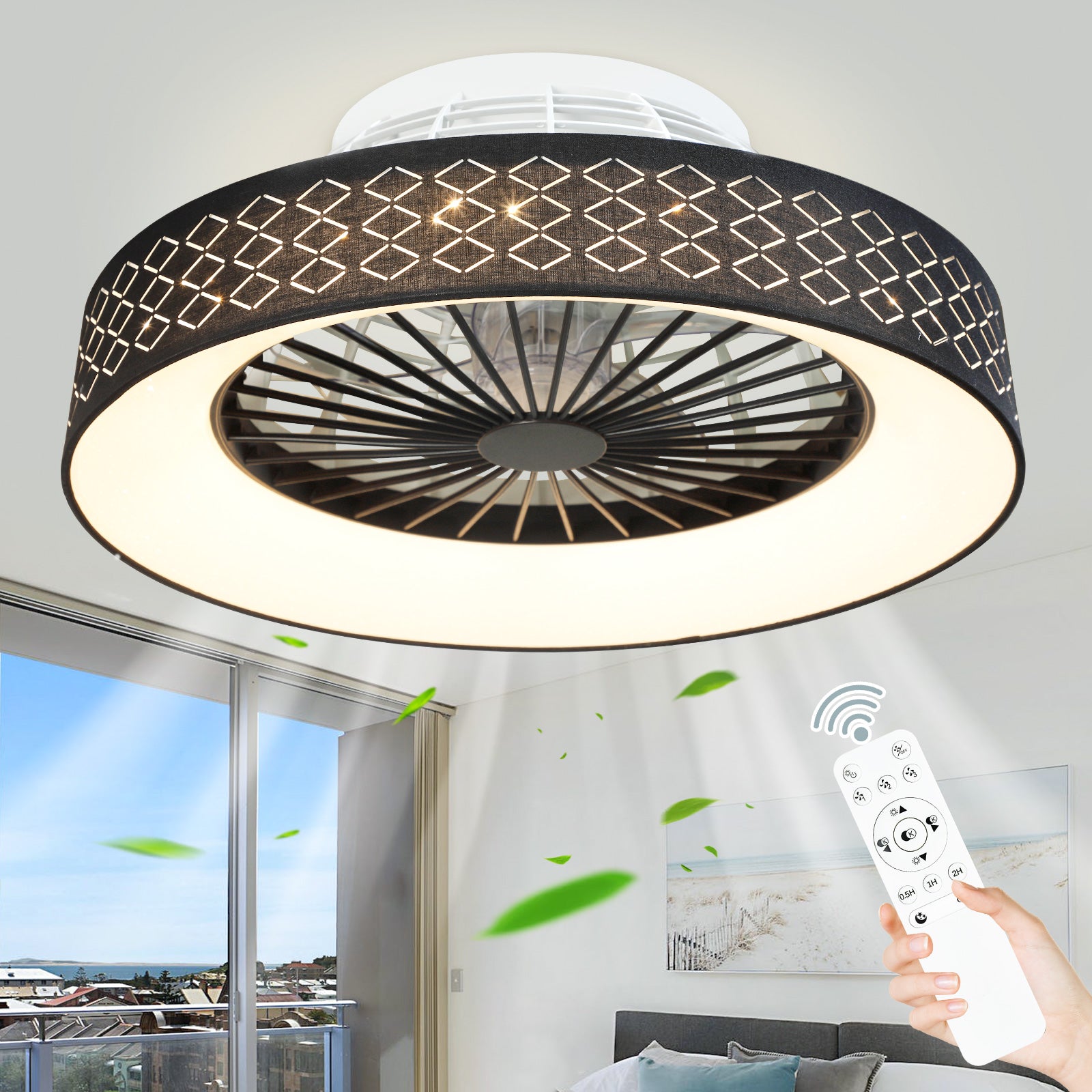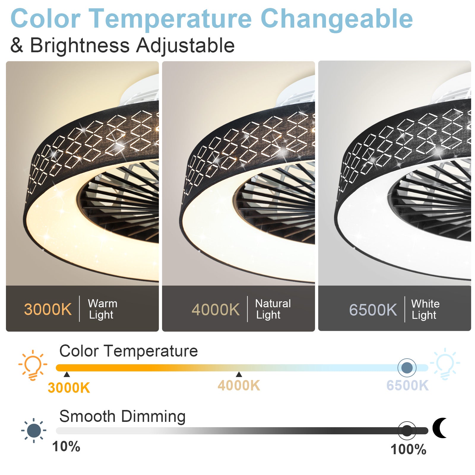 - ✤2 in 1 Modern Design✤ Tässä uppoasennettavassa kattotuulettimessa yhdistyvät säädettävä LED-valorengas moderniin terättömään tuulettimeen, joka lisää sisustukseesi tyylikästä ja luovaa tunnelmaa ja tarjoaa hiljaisen jäähdytyksen ja kirkastaa tilaasi tyylikkäästi.