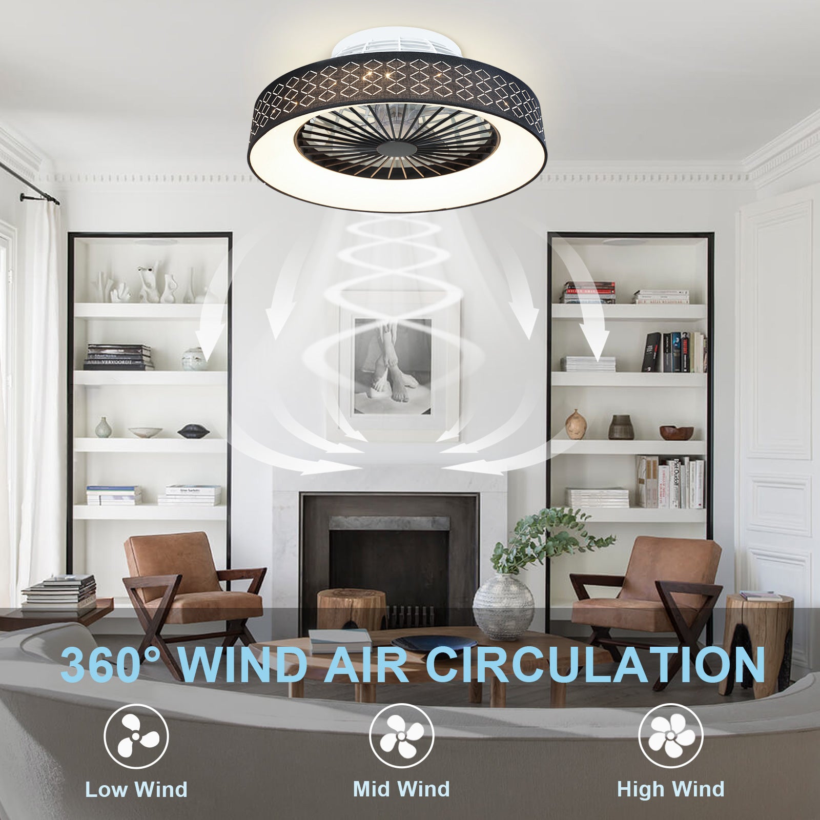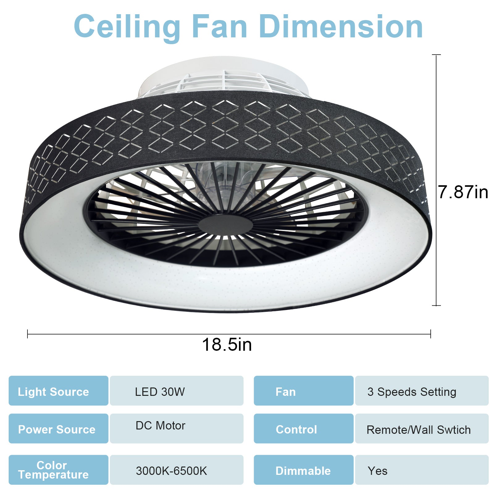 - ✤Toiminnallisuus✤ Suljetussa kattotuulettimessa on matala profiili, suljettu rakenne, ja siinä on laadukas kuparimoottori, joka on melko tasainen ja tarjoaa voimakkaan ilmavirran. Se tarjoaa 3 nopeustilaa ja täydentää minkä tahansa makuuhuoneen, keittiön, olohuoneen, ruokailutilan jne.