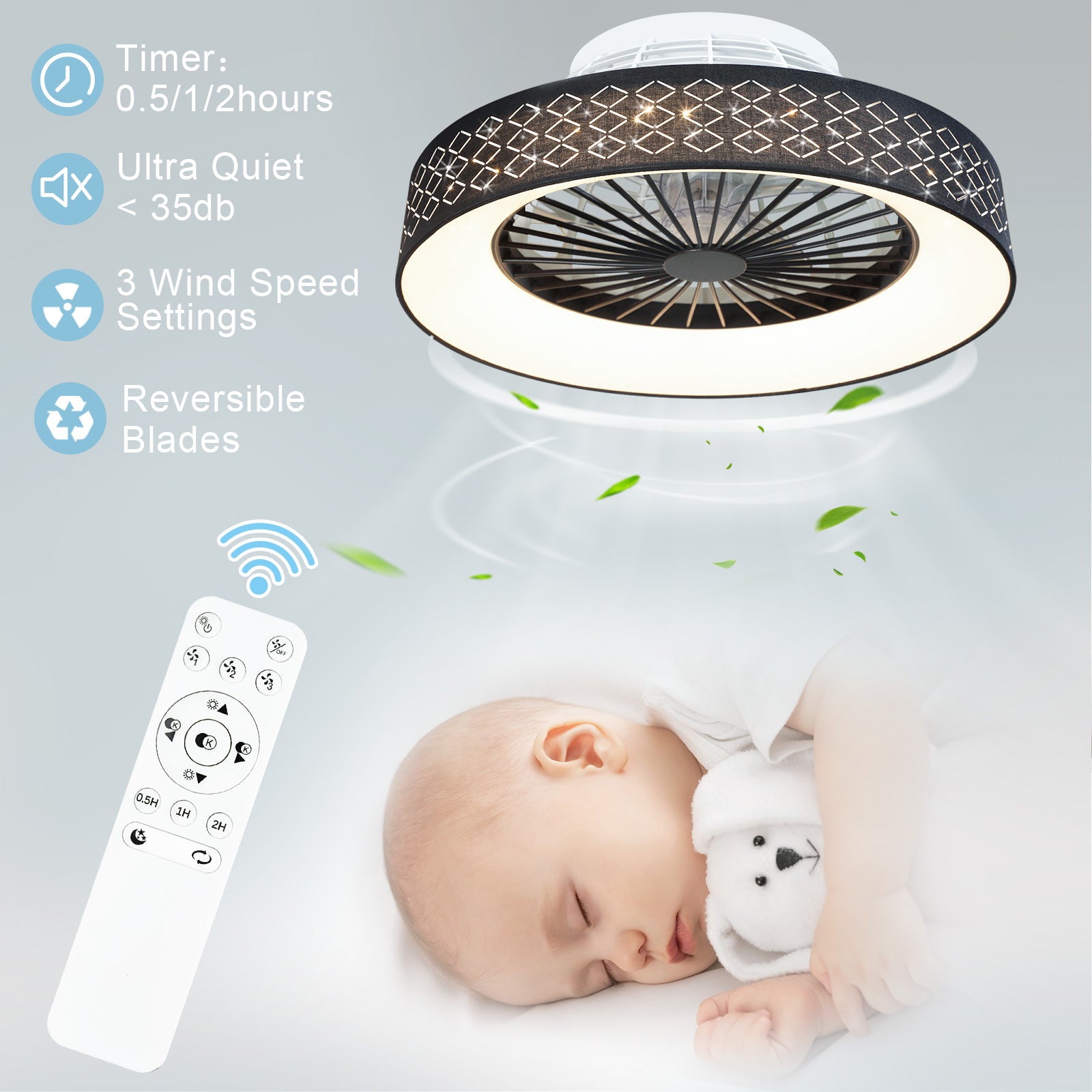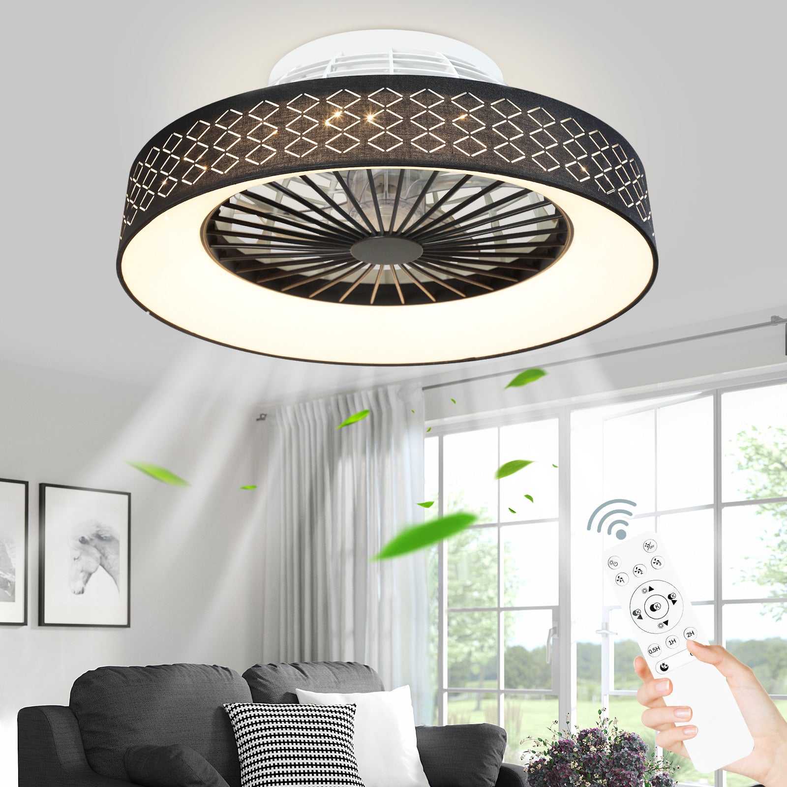 - ✤Jäähdytys ja valaistus✤ Matalaprofiilinen kattotuuletin, jossa on tähti, sopii erinomaisesti sekä jäähdytykseen että valaistukseen, sillä se pystyy kierrättämään ilmaa ja lisäämään valaistusta, joten se sopii hyvin heidän olohuoneeseensa ja tarjoaa mukavan ympäristön.