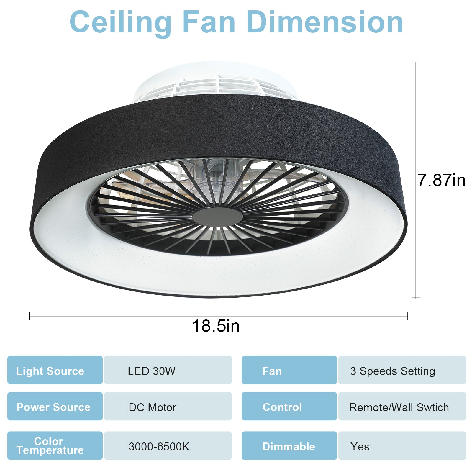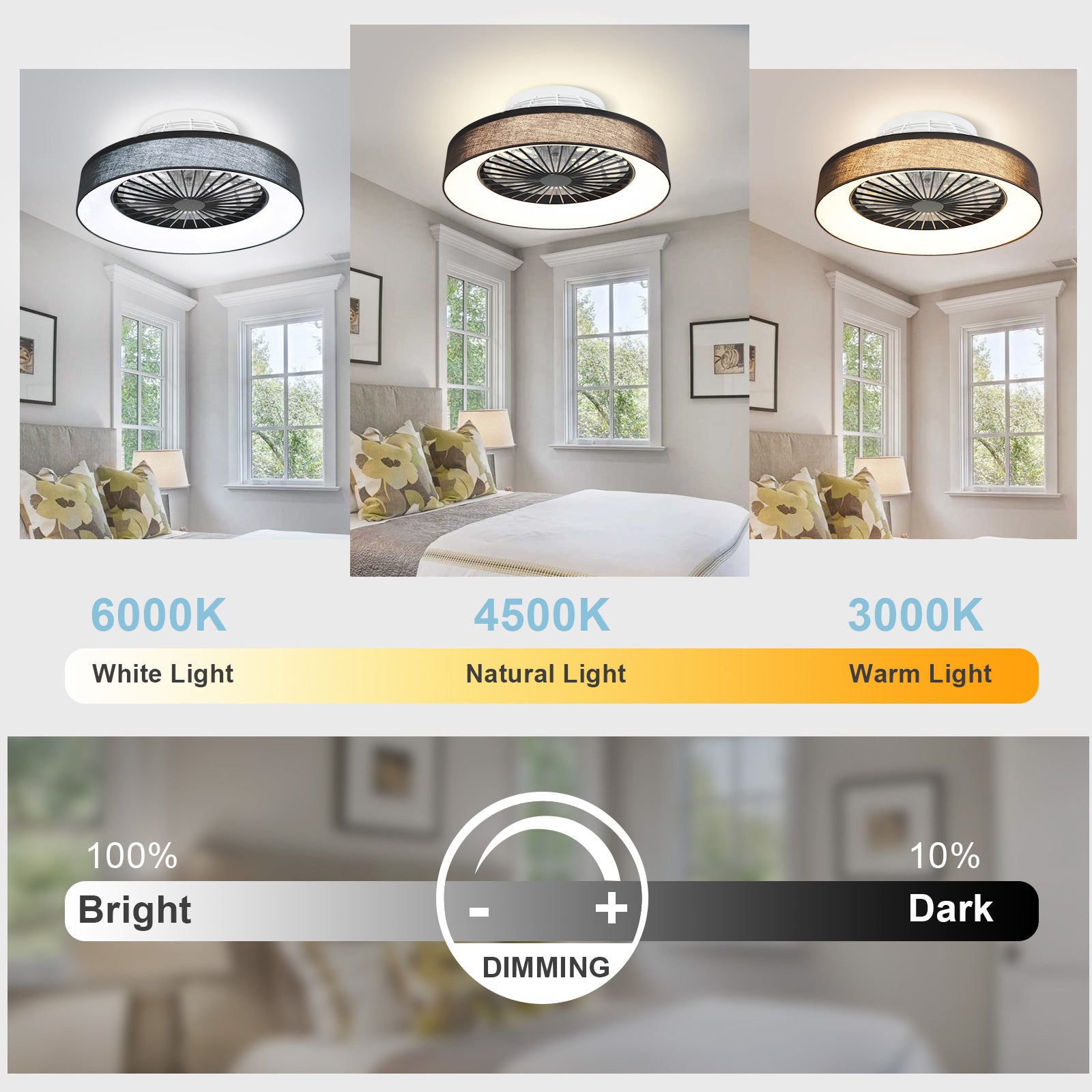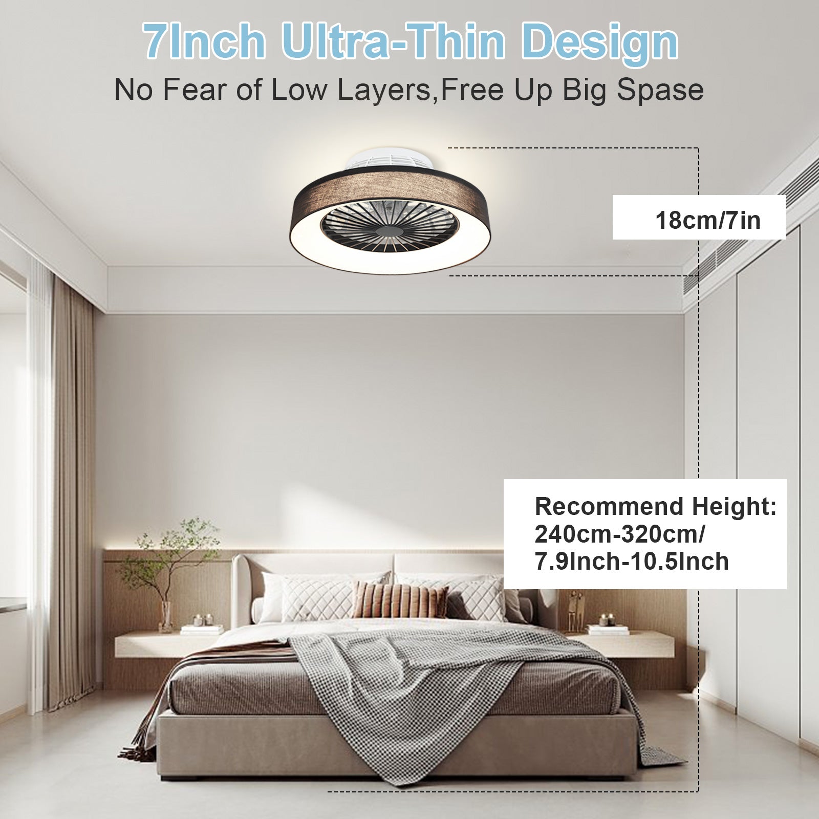 Depuleyn matalaprofiilinen kattotuuletin - 18,5 tuuman terättömät kattotuulettimet valolla ja kaukosäätimellä, 3 väriä himmennettävissä LED-valolla, 3 nopeudella 7-lapaiset kattotuulettimet olohuonees