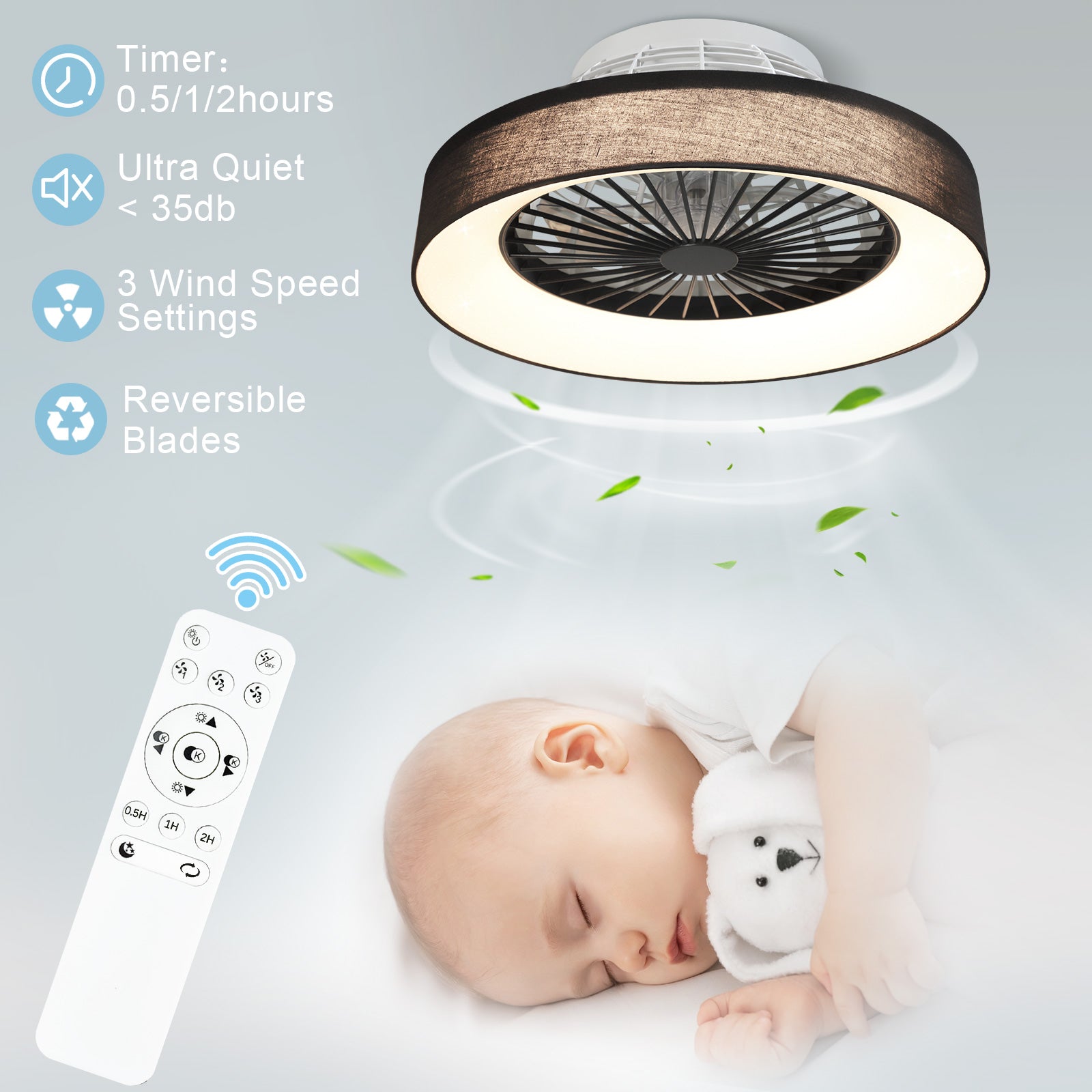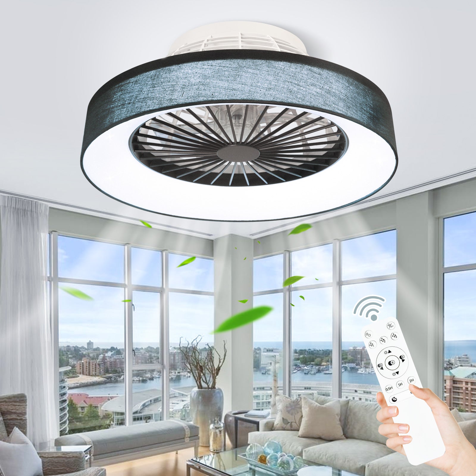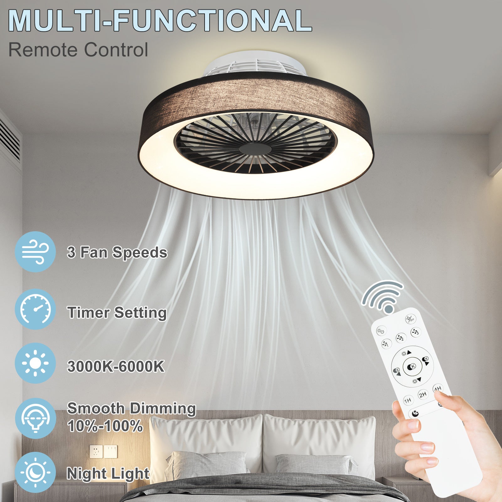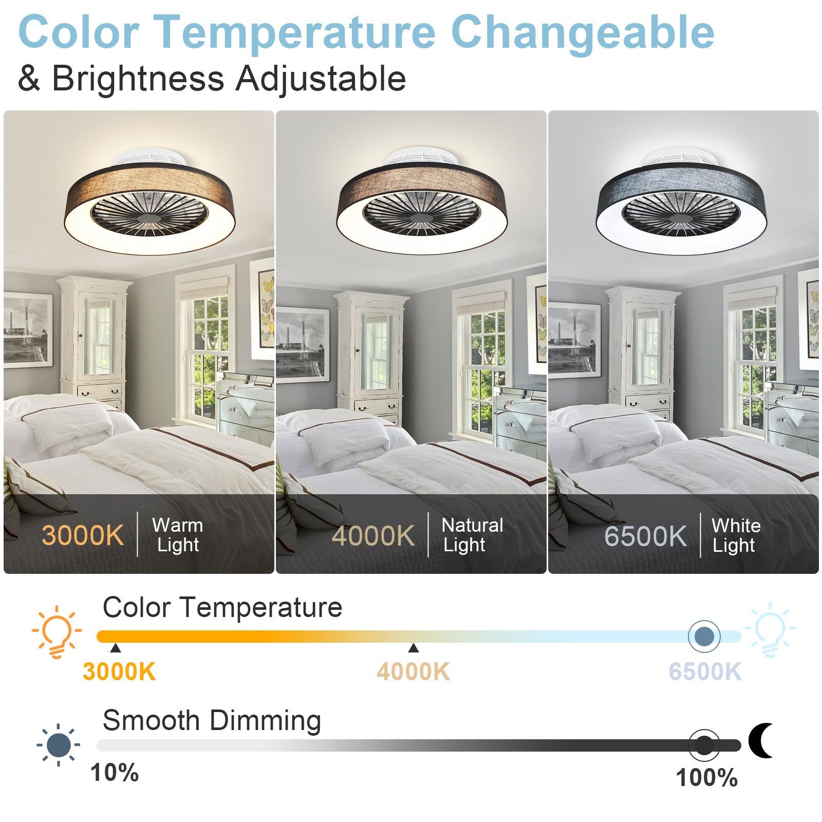 Depuleyn matalaprofiilinen kattotuuletin - 18,5 tuuman terättömät kattotuulettimet valolla ja kaukosäätimellä, 3 väriä himmennettävissä LED-valolla, 3 nopeudella 7-lapaiset kattotuulettimet olohuonees