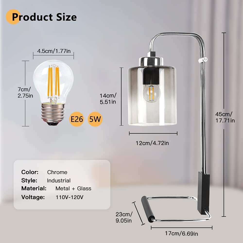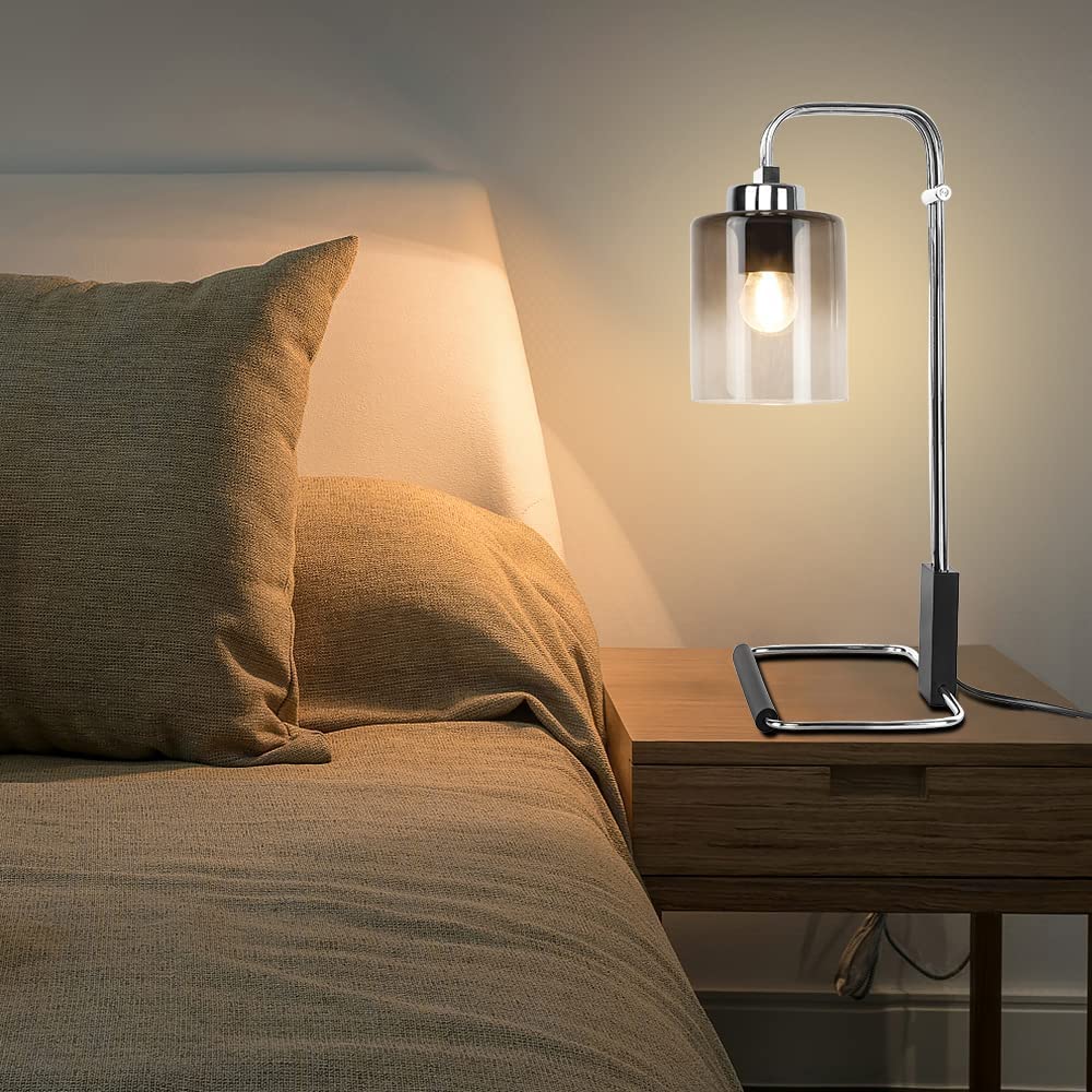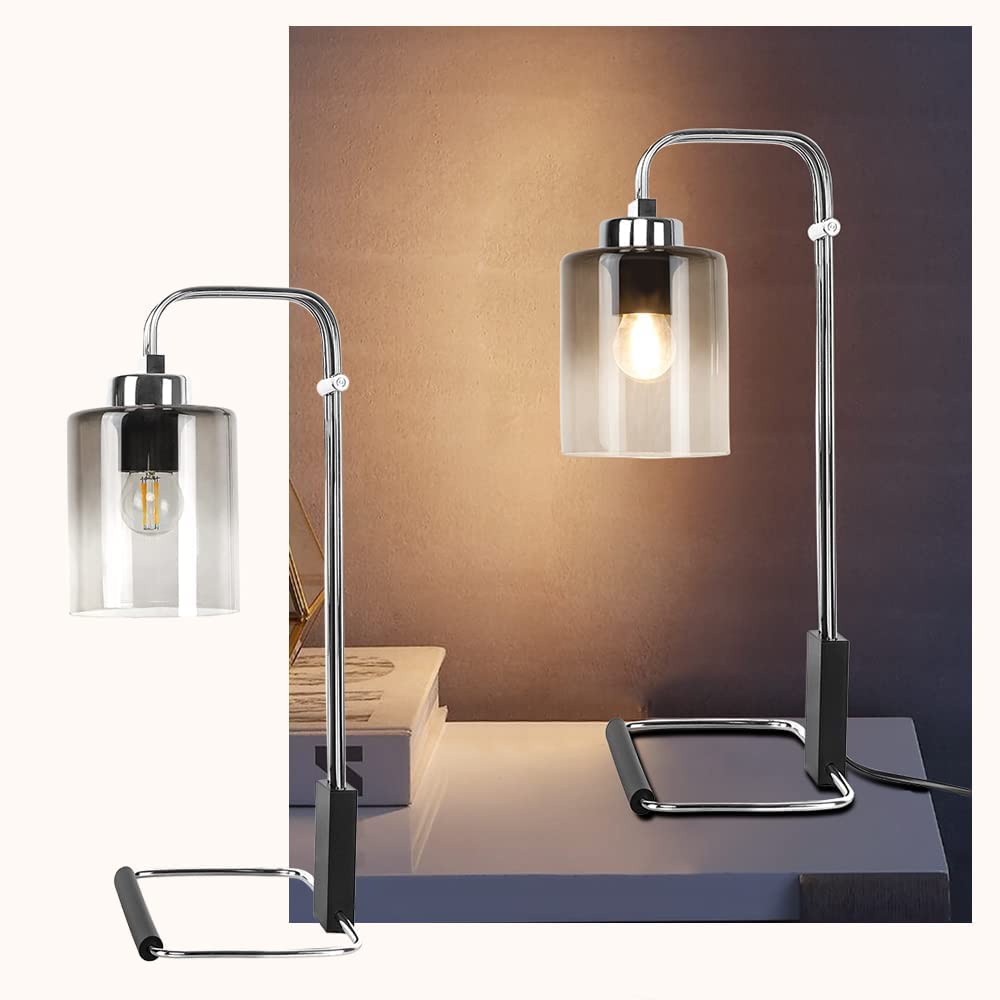 Depuley Industrial Pöytävalaisin, Metalli ja Lukuvalaisimet Gradient Harmaa Lasinen Lampunvarjostin, Vintage Yöpöytä Valaisin