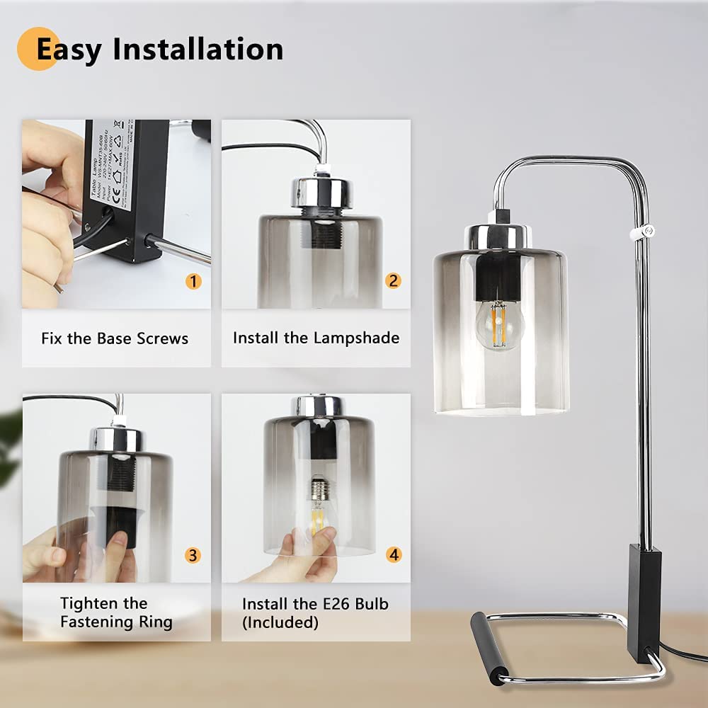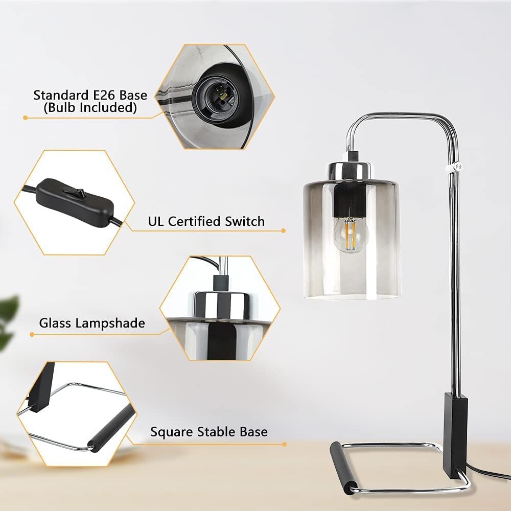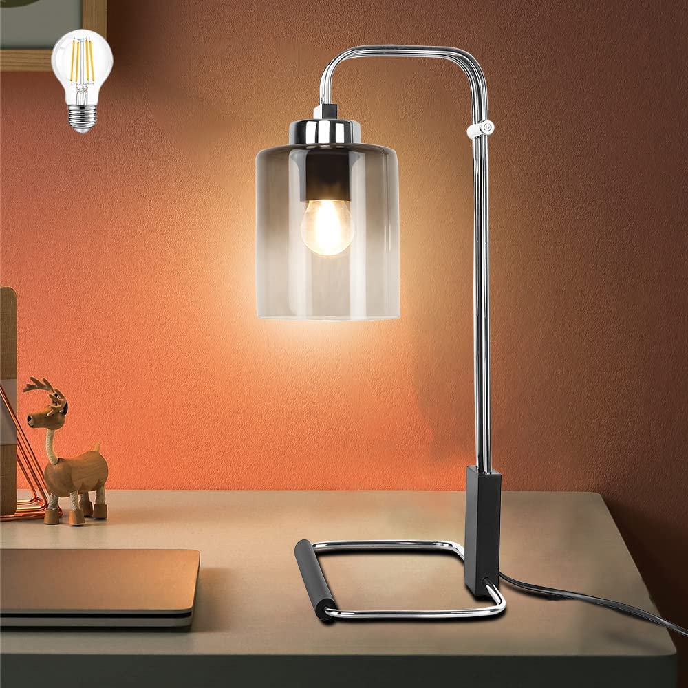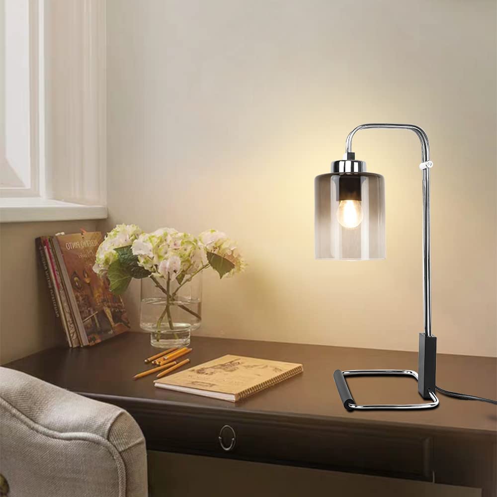 Depuley Industrial Pöytävalaisin, Metalli ja Lukuvalaisimet Gradient Harmaa Lasinen Lampunvarjostin, Vintage Yöpöytä Valaisin