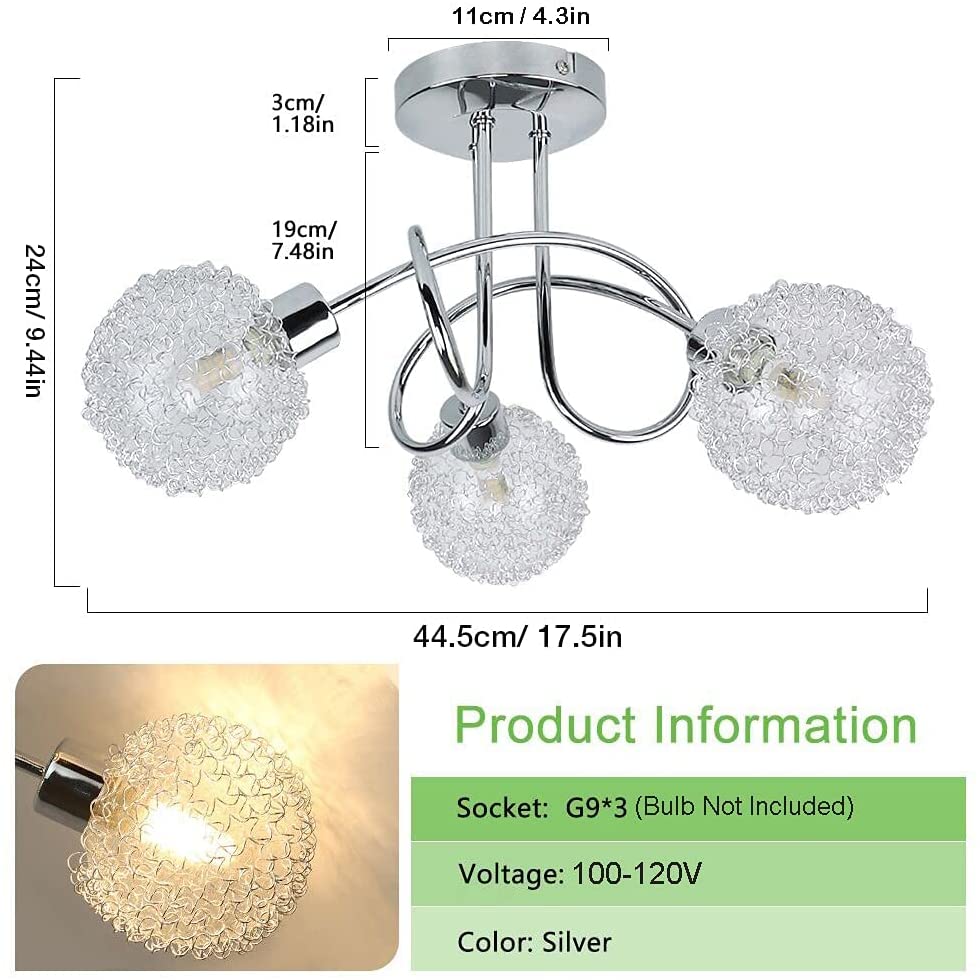 Depuley Modern 3-valaisin puoliksi uppoasennettava kattovalaisin, pieni Sputnik-kattokruunu maapallon varjostimella, tyylikäs kattolamppu makuuhuoneeseen keittiöön käytävällä eteinen ruokasali