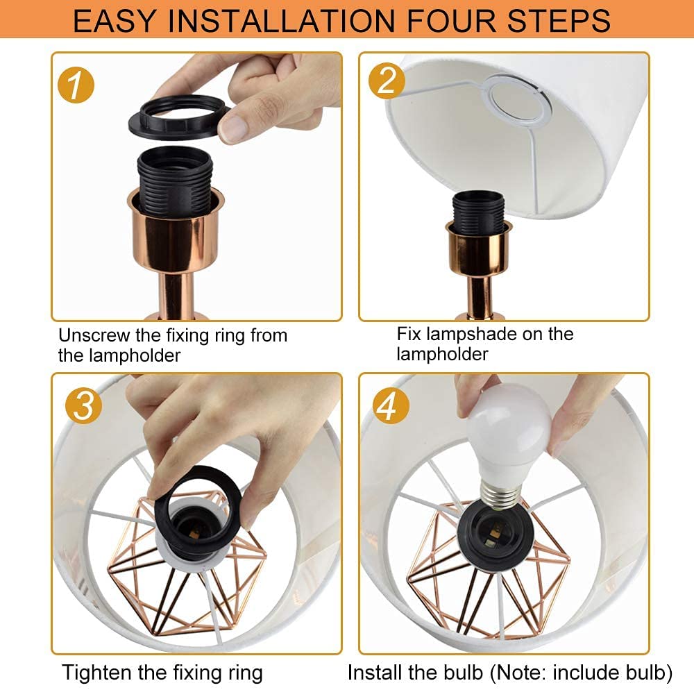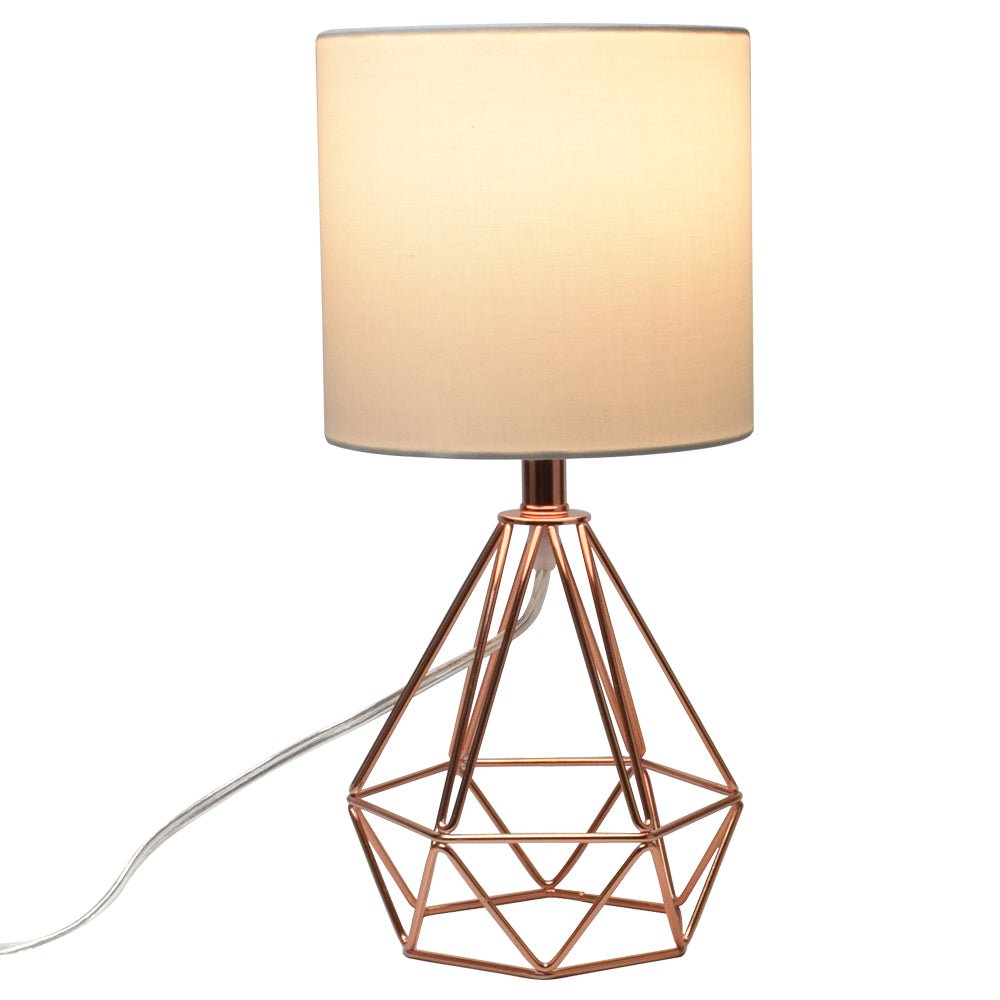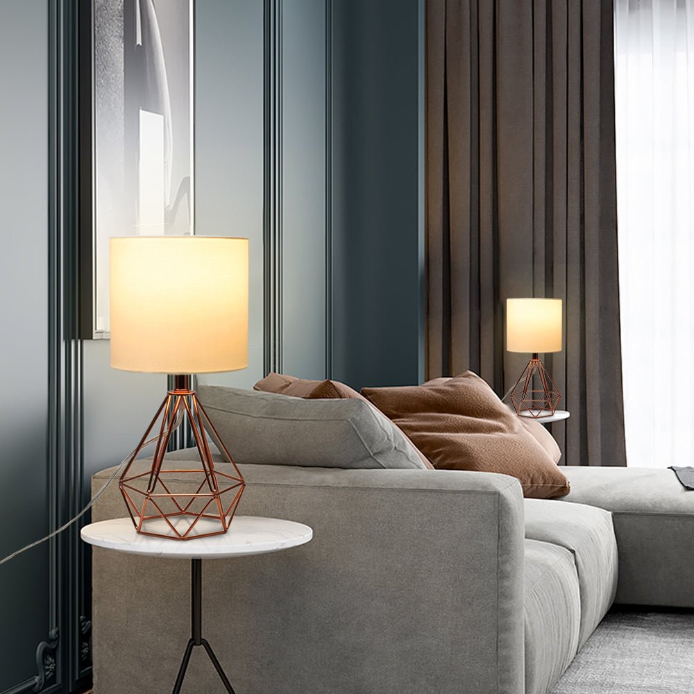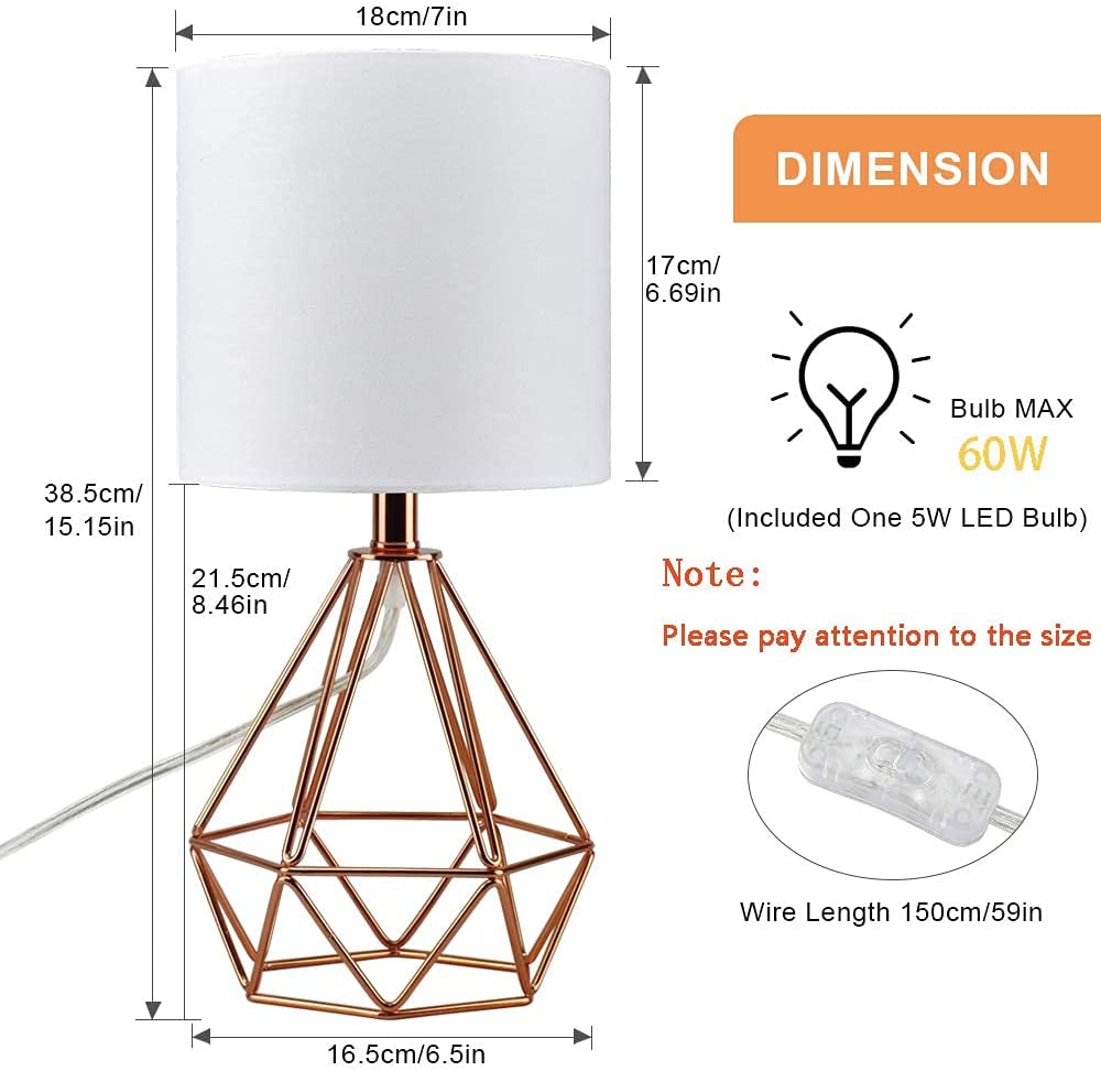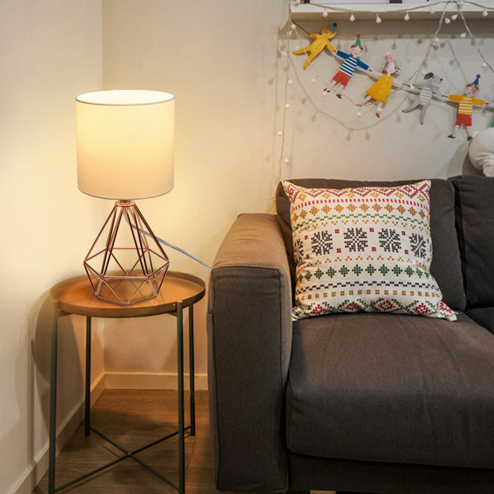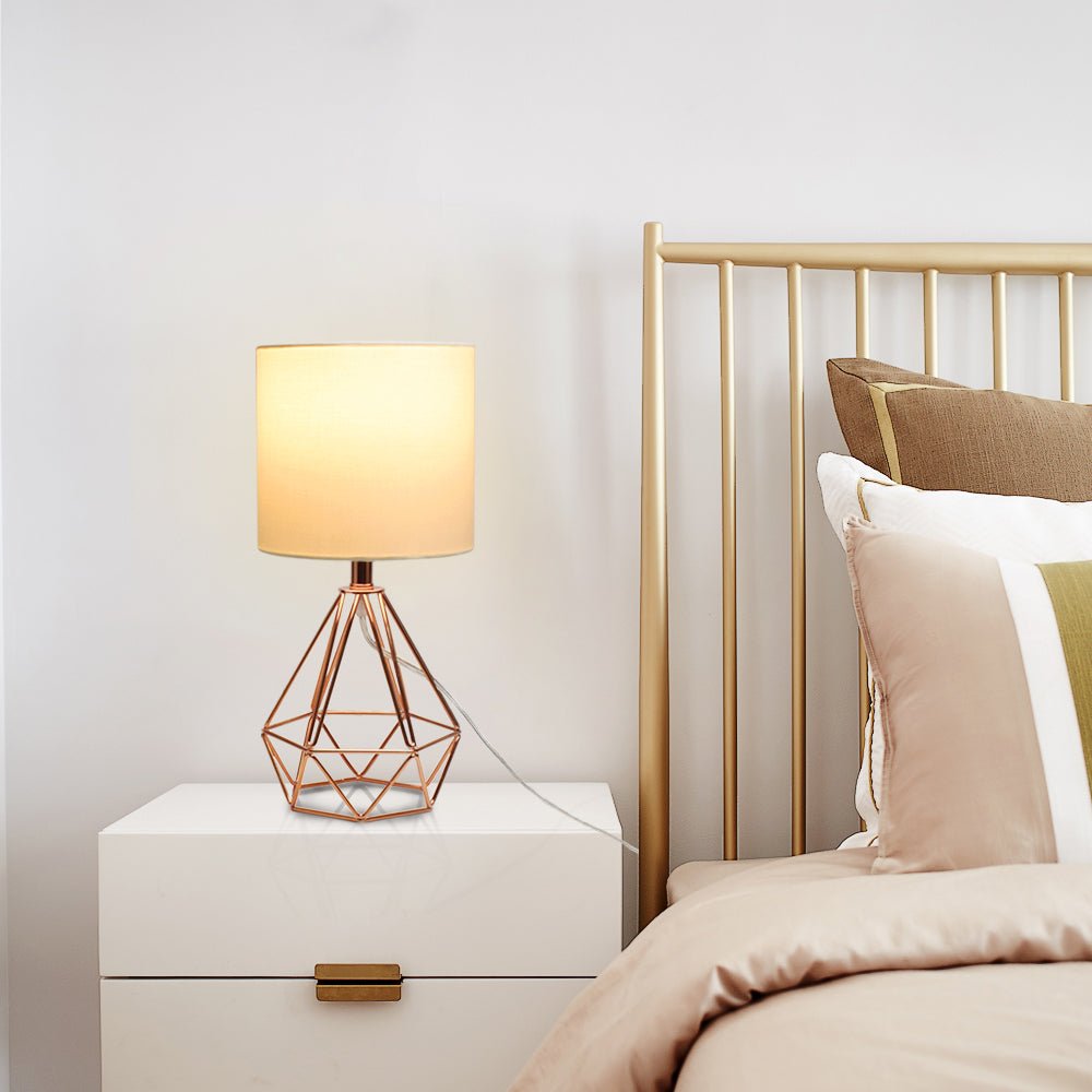 Depuley moderni pöytävalaisin makuuhuoneeseen, geometrinen yöpöytävalaisin ruusukultaisella metallipohjalla ja kangasvarjostimella, yöpöytälamput olohuoneeseen, toimisto