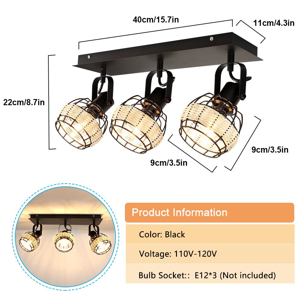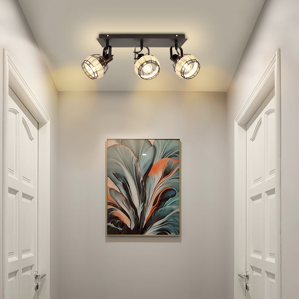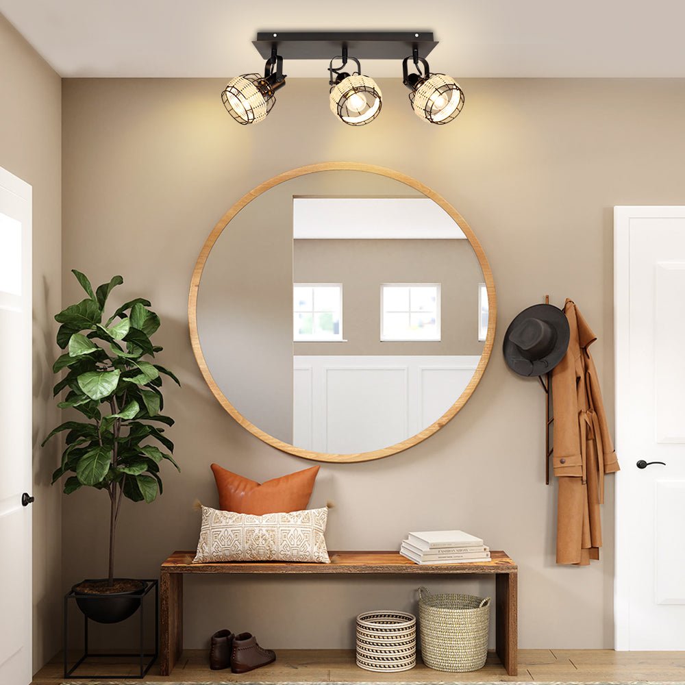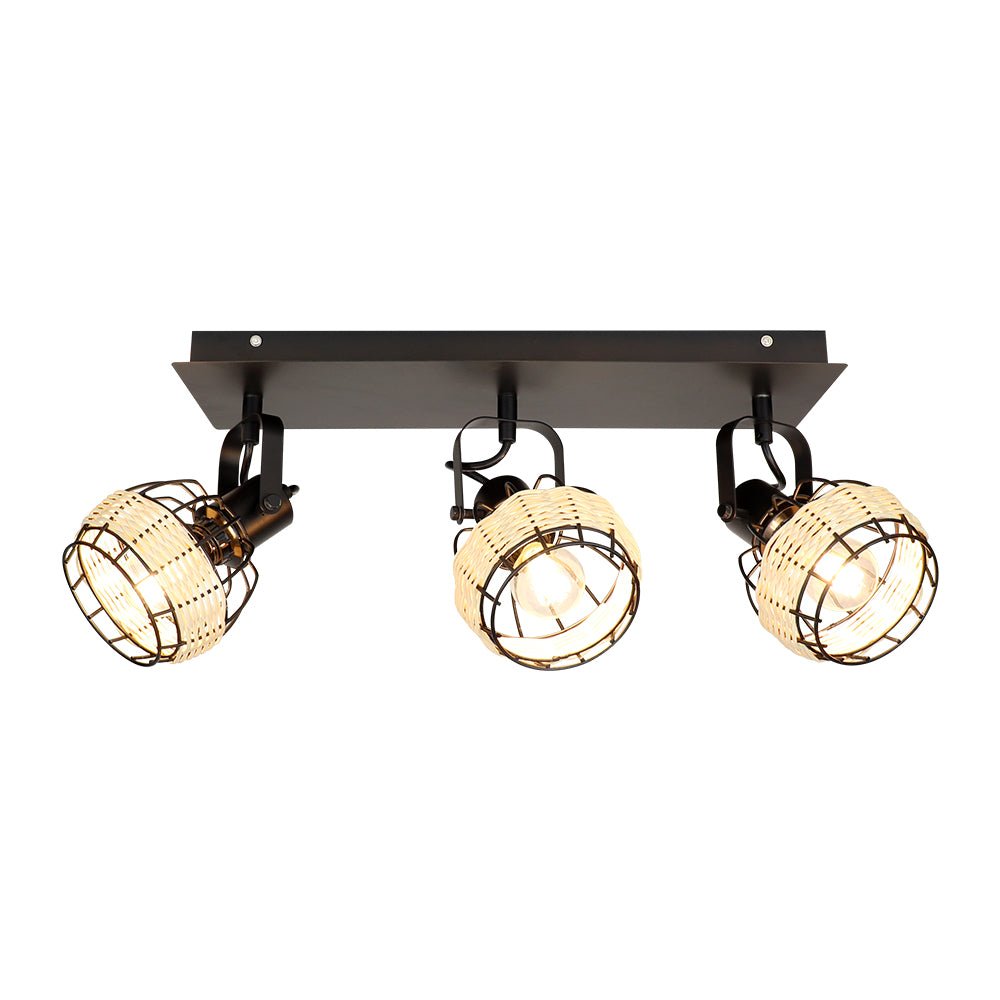 Depuley Rustic Metal and Rattan 3-Light seinävalaisin, säädettävällä suuntaisella lampunvarjostimella