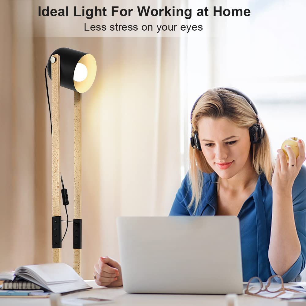 Depuley modernit metalliset puiset lattiavalaisimet olohuoneeseen, 360° pyörivä seisomavalo painekytkimellä, lukulamppu makuuhuoneen toimiston sisustukseen, polttimo mukana