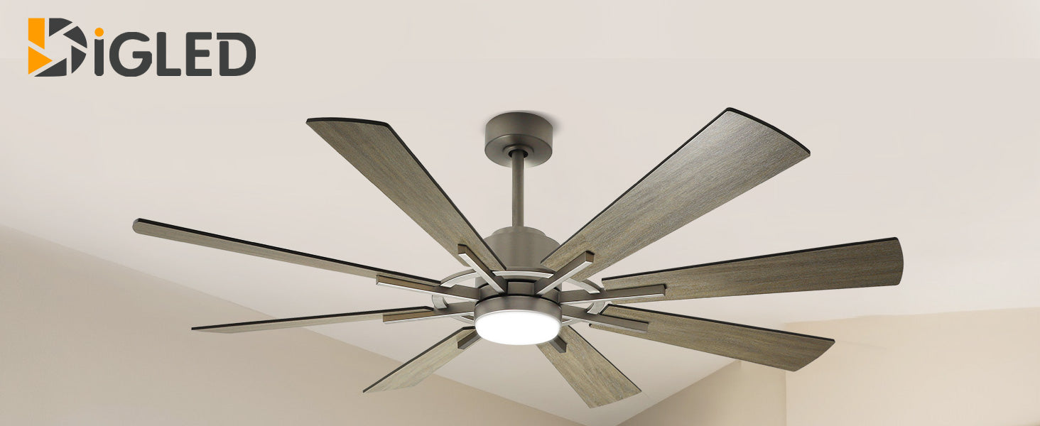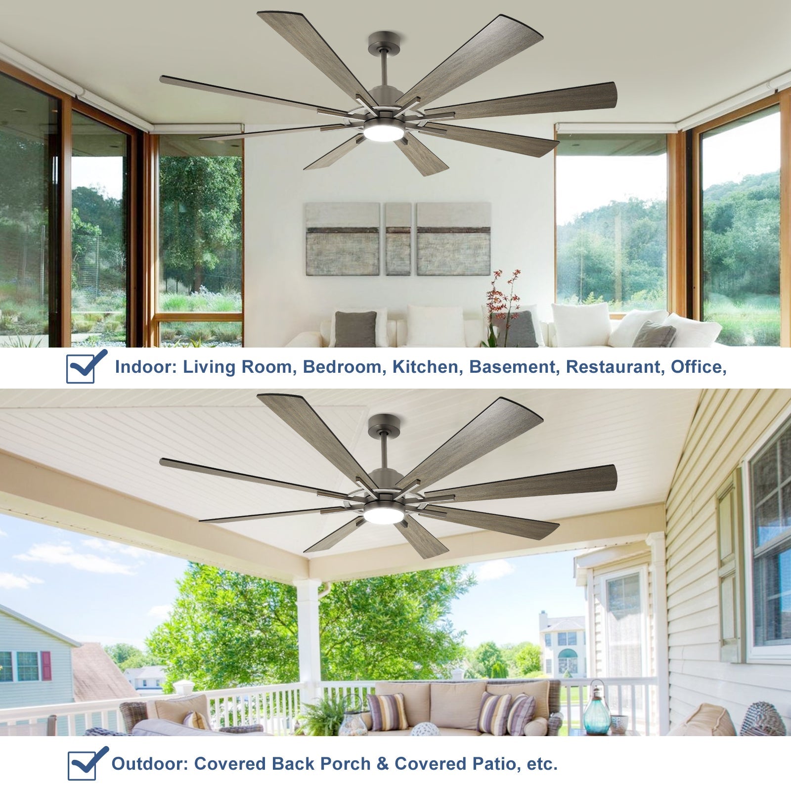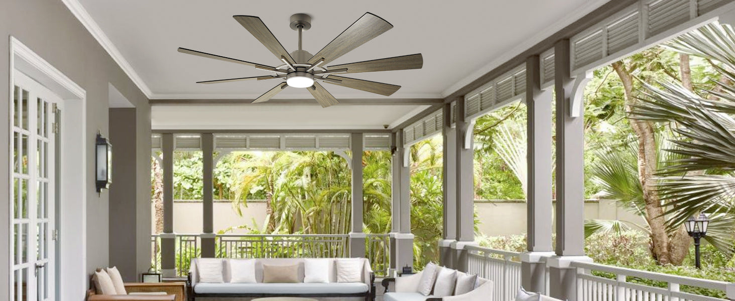 DIGLED 72" / 60" kattotuuletin valoilla ja kaukosäätimellä, 8-lapainen 5-nopeuksinen käännettävä tasavirtamoottori, teollinen suuri kattotuuletin katetulle terassille kuisti, harmaa ennakkomyynti