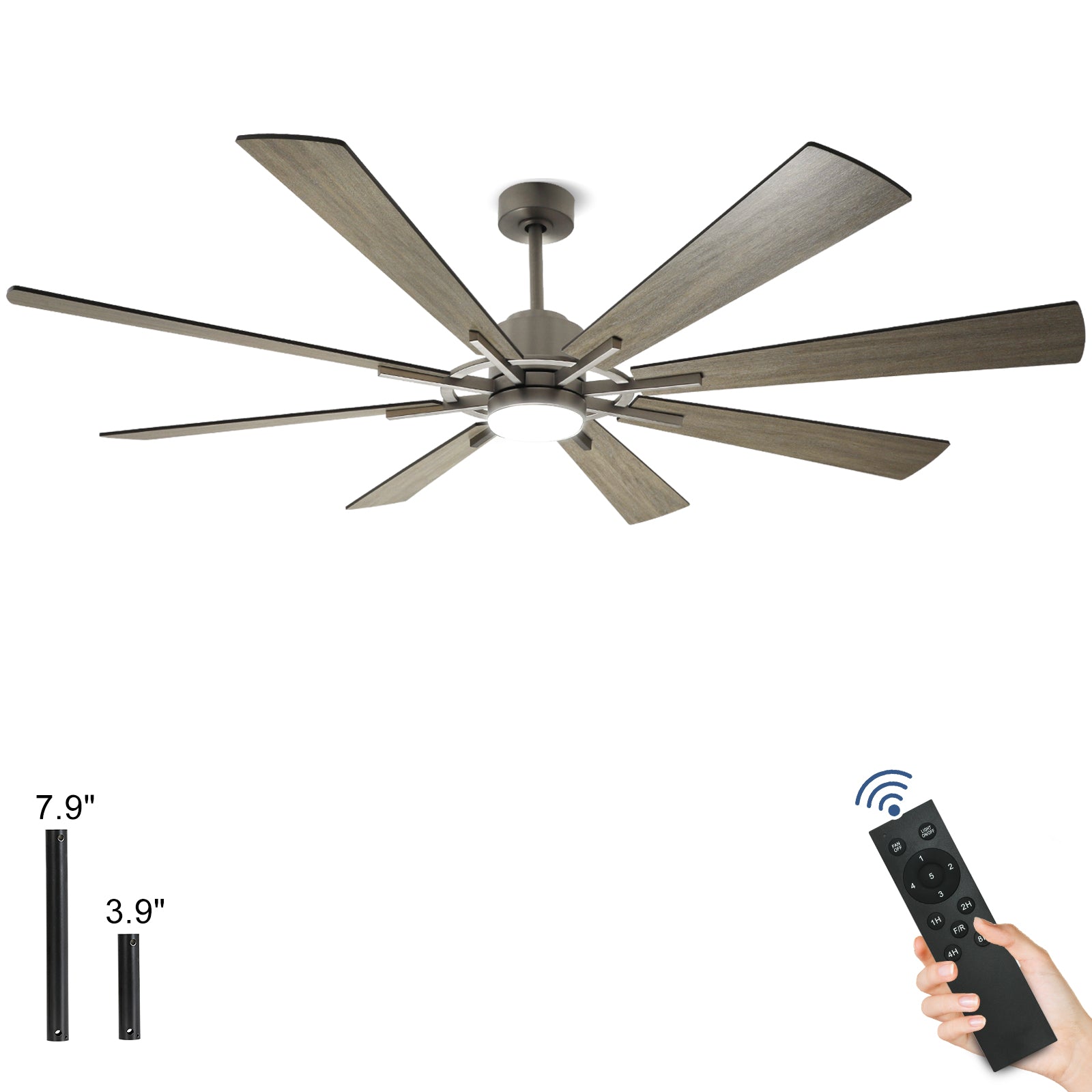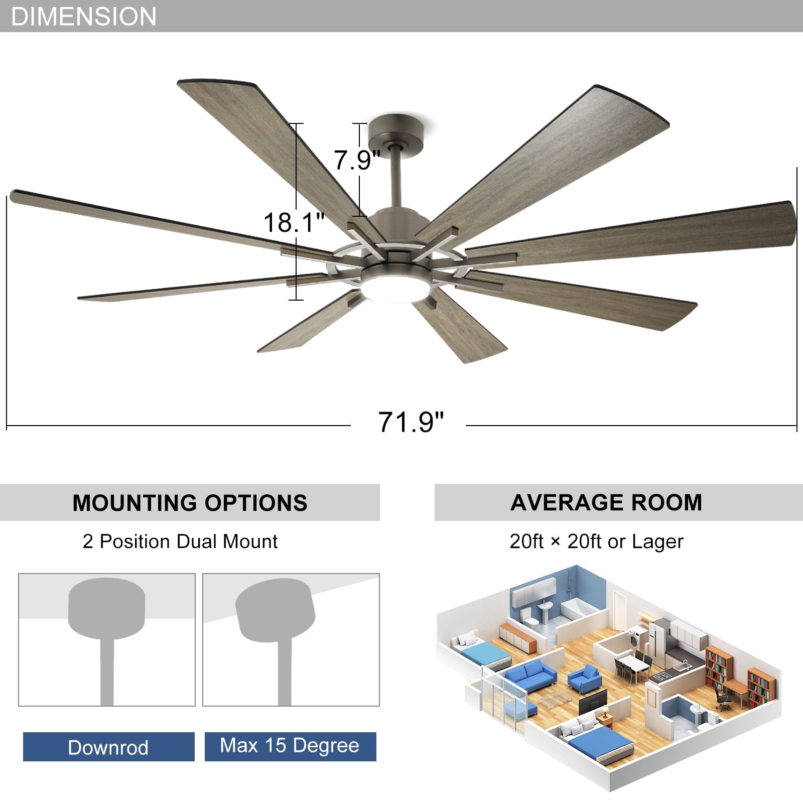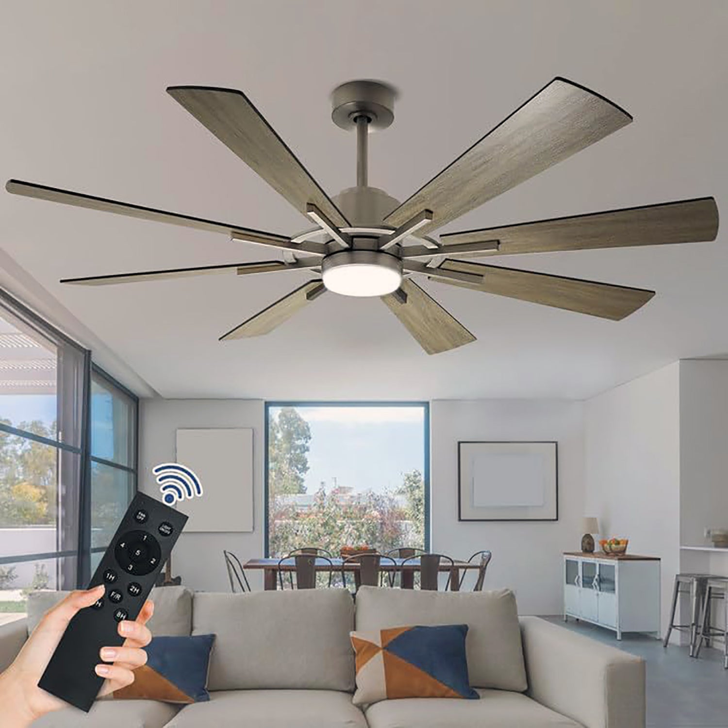 DIGLED 72" / 60" kattotuuletin valoilla ja kaukosäätimellä, 8-lapainen 5-nopeuksinen käännettävä tasavirtamoottori, teollinen suuri kattotuuletin katetulle terassille kuisti, harmaa ennakkomyynti