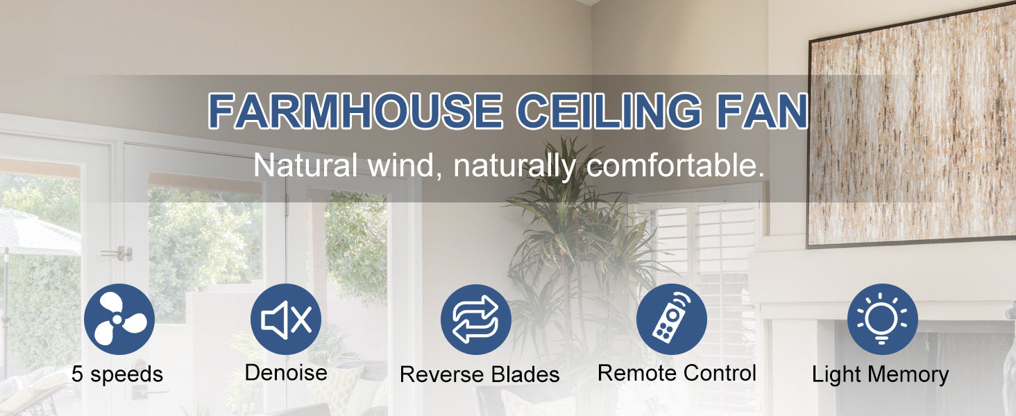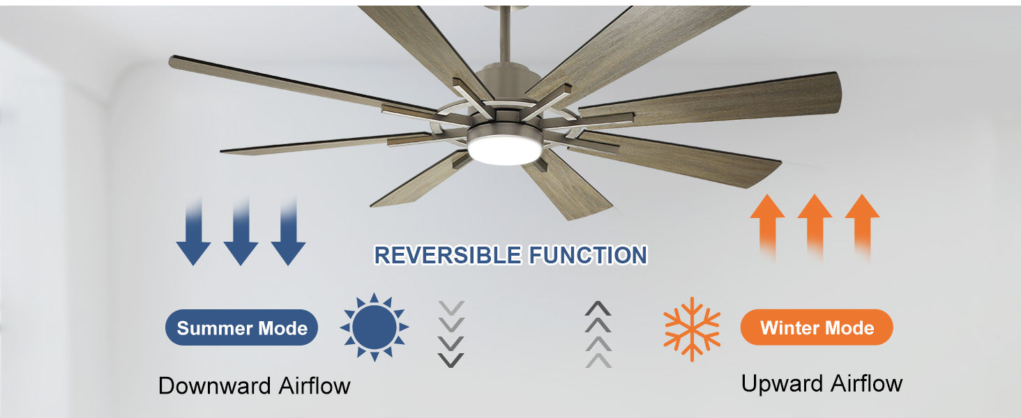 - 【5-nopeuksinen kaksisuuntainen tuuletin】Tehokas 72 tuuman puinen kattotuuletin toimii viidellä eteen- ja taaksepäinnopeudella (helppo säätää mukana tulevalla kaukosäätimellä). Sen hiljainen, käännettävä moottori mahdollistaa sen, että se muuttaa huoneesi keitaan kesällä ja lämmittää sinut talvella.