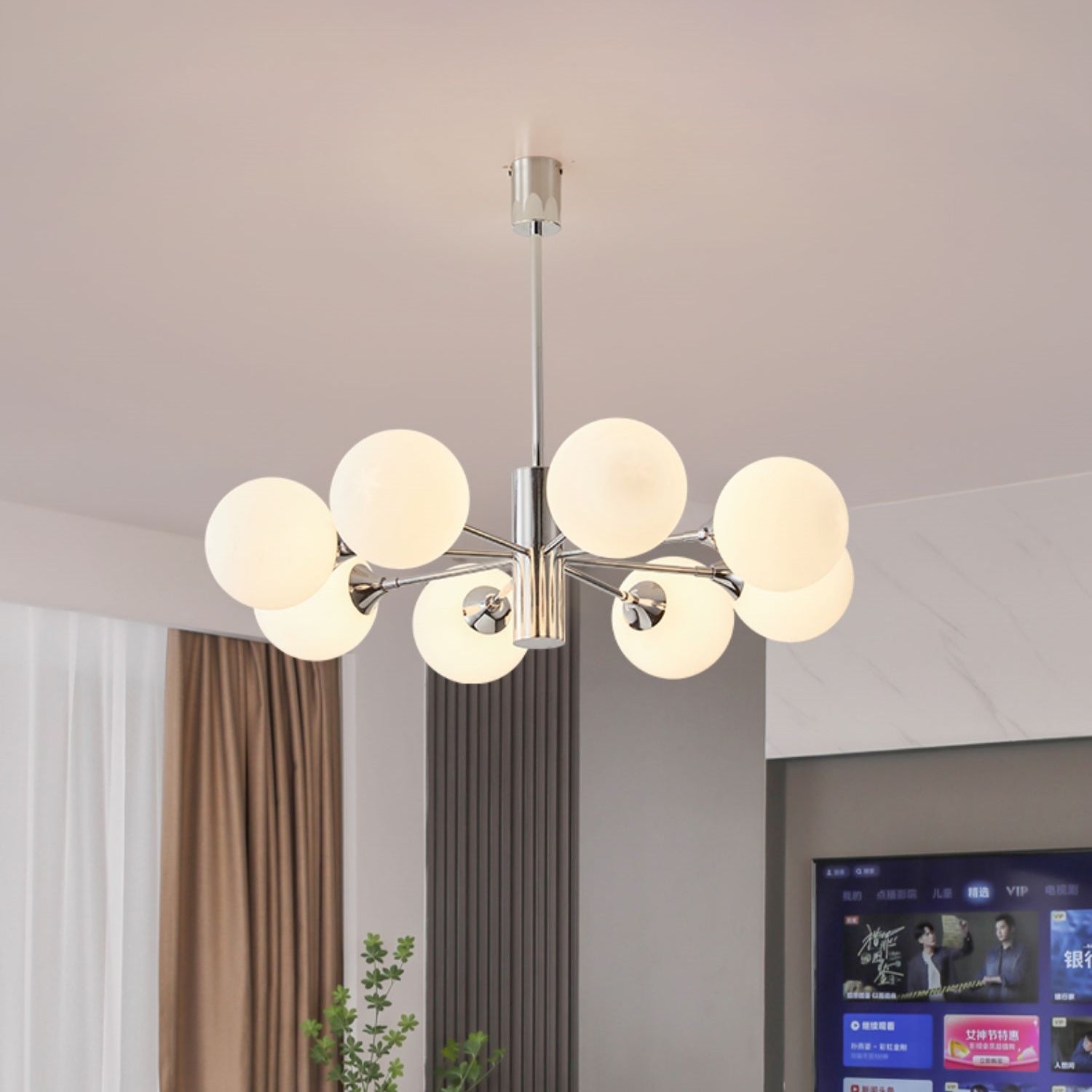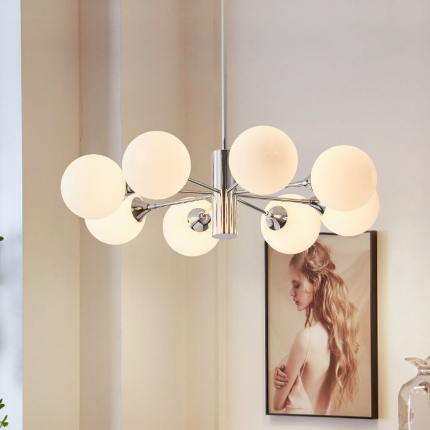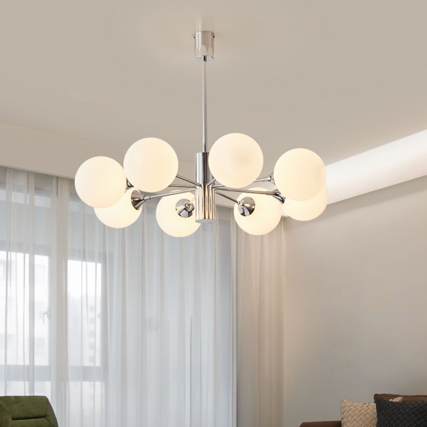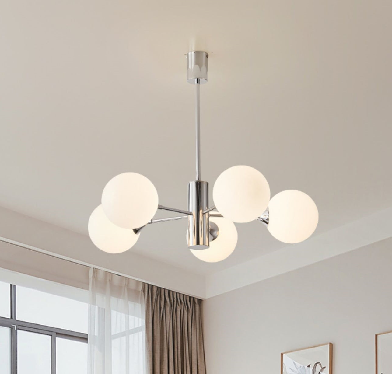 Valkoisen himmeän lasin väriä voidaan yhdistää erilaisiin sisustustyyleihin. Säätötankoon mahtuu useita kattokorkeuksia, mikä luo tyylikkään rakenteen. Kattokruunuja voidaan käyttää keittiön valaisimina, kattovalaisimina ja ruokasalin valaisimina ja niin edelleen.