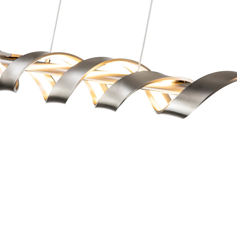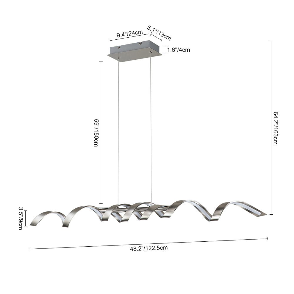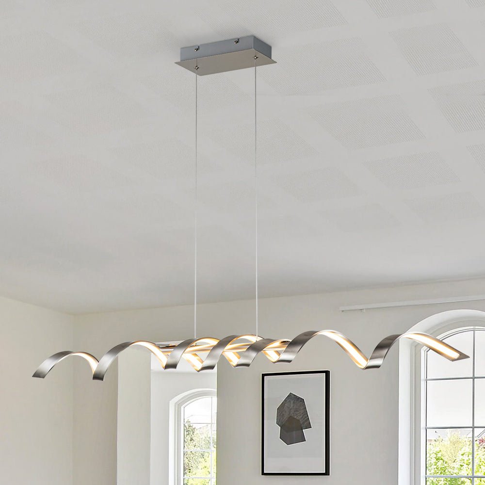 Aaltojen inspiroima LED-keittiön saaririipus sisältää ohuen spiraalisen lineaarisen LED-elementin, joka osoittaa dynaamista charmia, joka sopii täydellisesti nykyaikaiseen kodin sisustukseen. Tämä himmenninkytkimen kanssa yhteensopiva LED-valaisin tarjoaa säädettävän kirkkauden kätevästi tarpeen mukaan. Tämä moderni aaltoileva lineaarinen LED-keittiön saarekeriippuvalaisin on saatavana mustana tai nikkelinä viimeisteltynä, ja se on veistoksellinen keskipiste, joka on ihanteellinen käytettäväksi keittiösaarekkeen, ruokapöydän, kodin baarin tai olohuoneen päällä.Tiedot