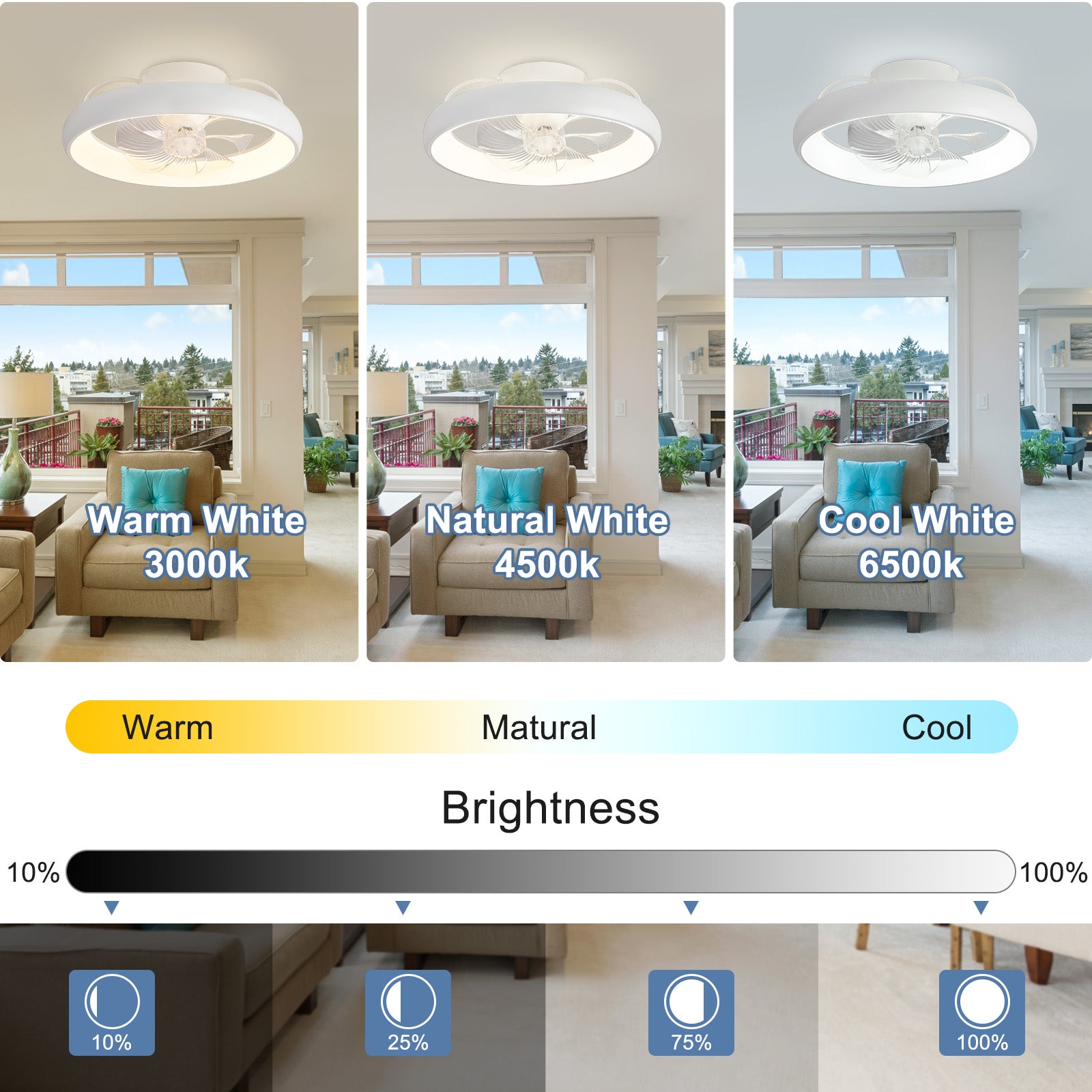 - �【Himmennettävä LED-valo】 Tämä uppoasennettava kattotuulettimen valo voi olla kirkkaasta himmeään. Se on myös energiaa säästävä valaisin, jota voidaan ohjata etänä ja yksilöllisesti.