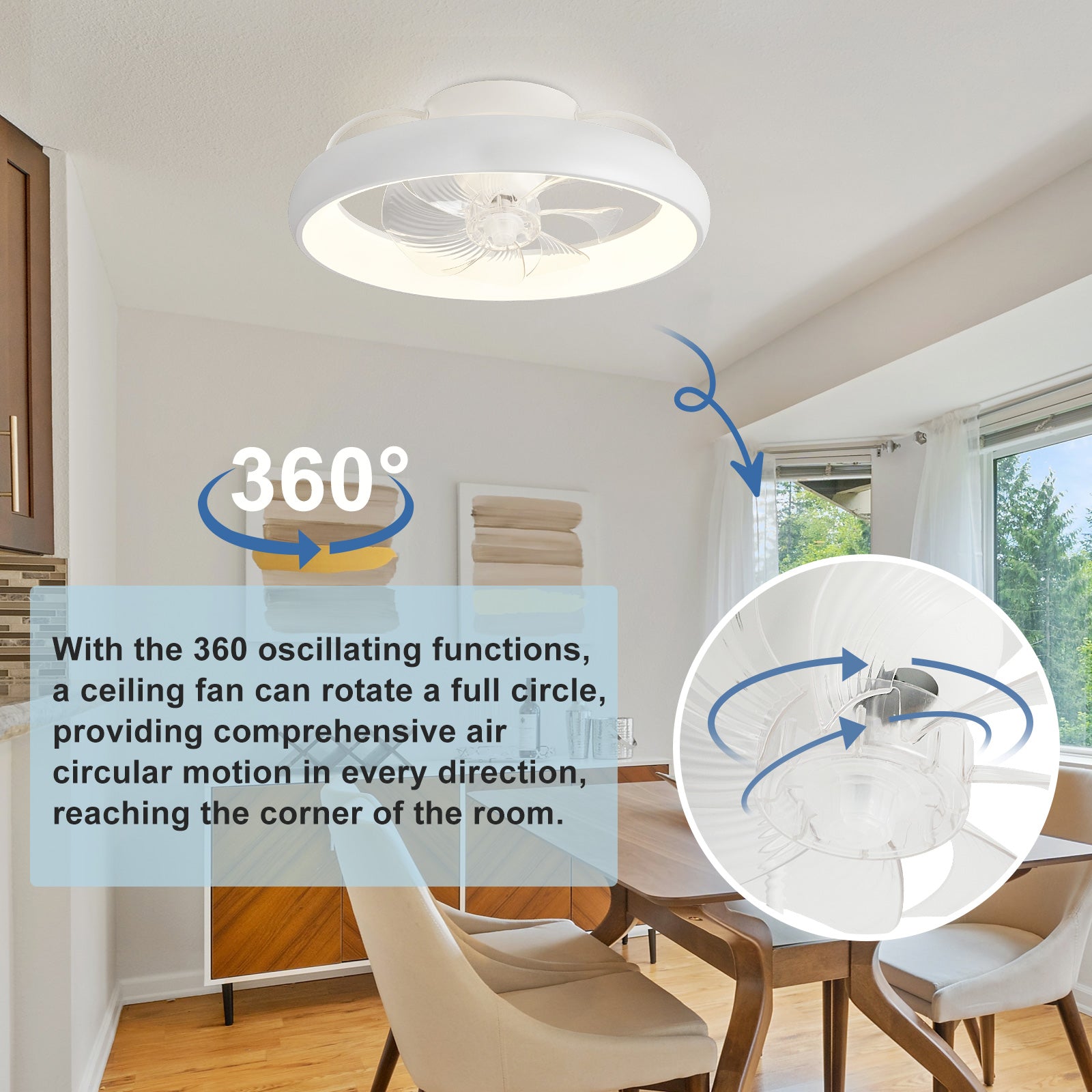 DLLT 360 astetta pyörivä LED-uppoasennettu kattotuuletin, moderni matalaprofiilinen kattotuuletin valoilla ja kaukosäätimellä, himmennettävä käännettävä ajoitus, 3CCT säädettävä keittiön makuuhuoneen