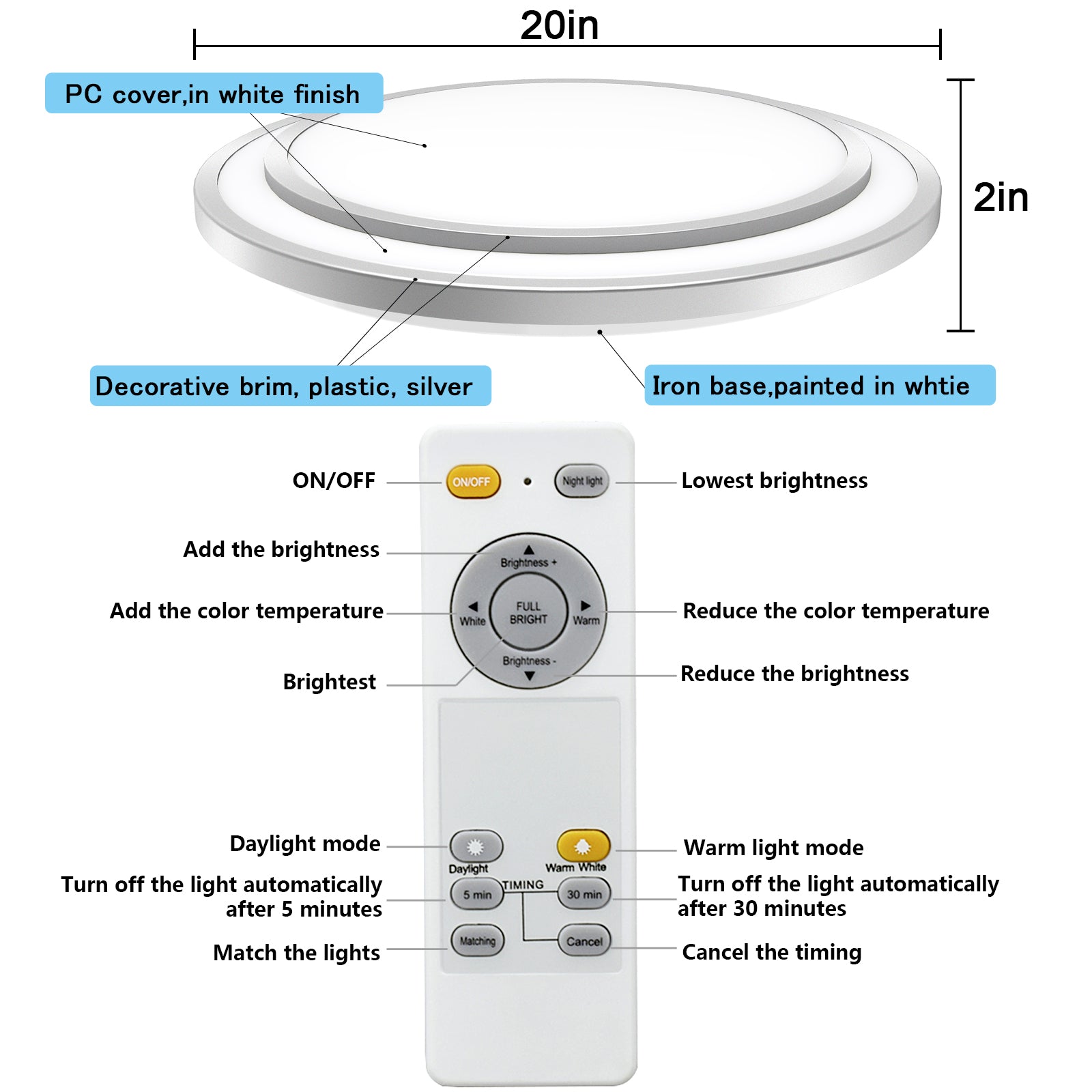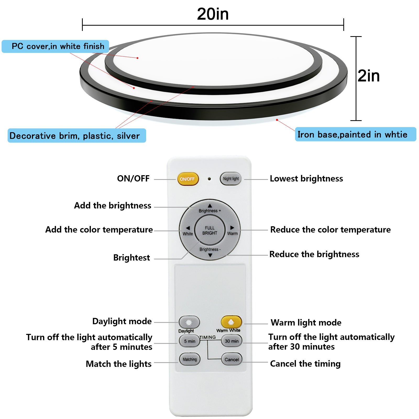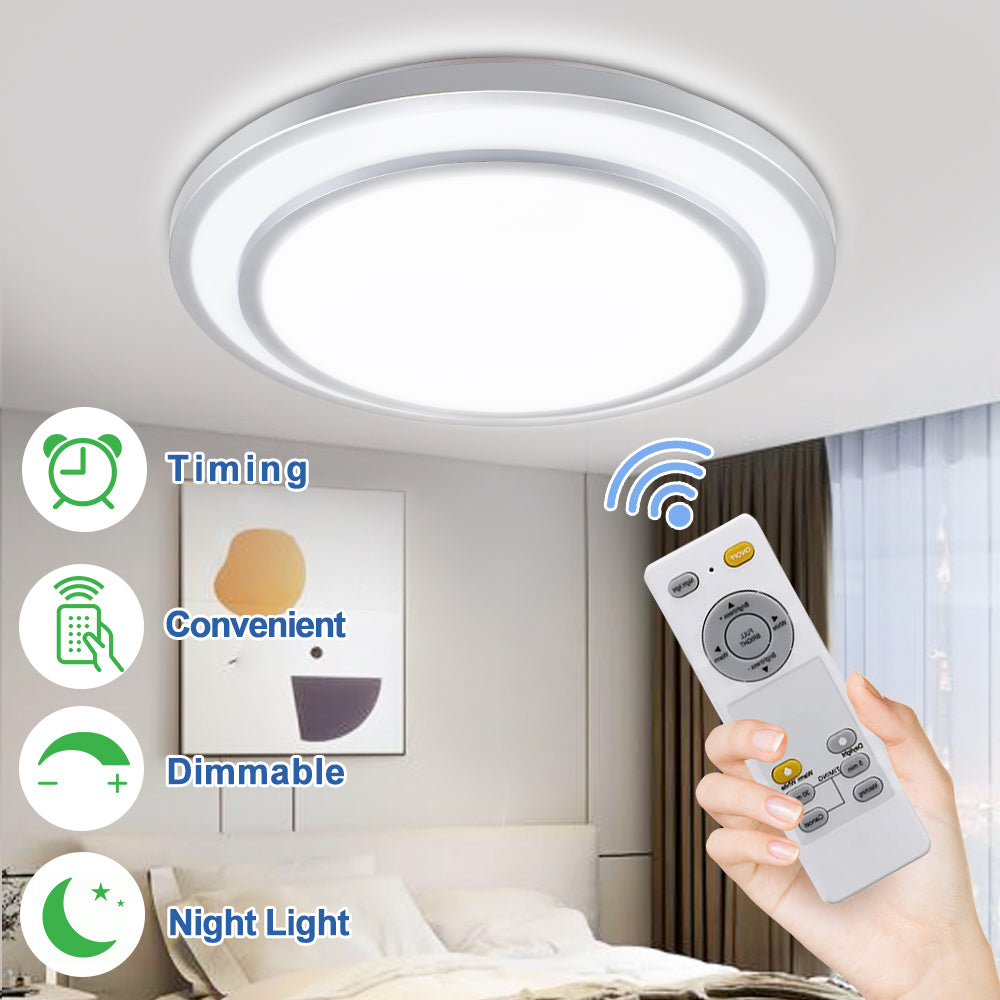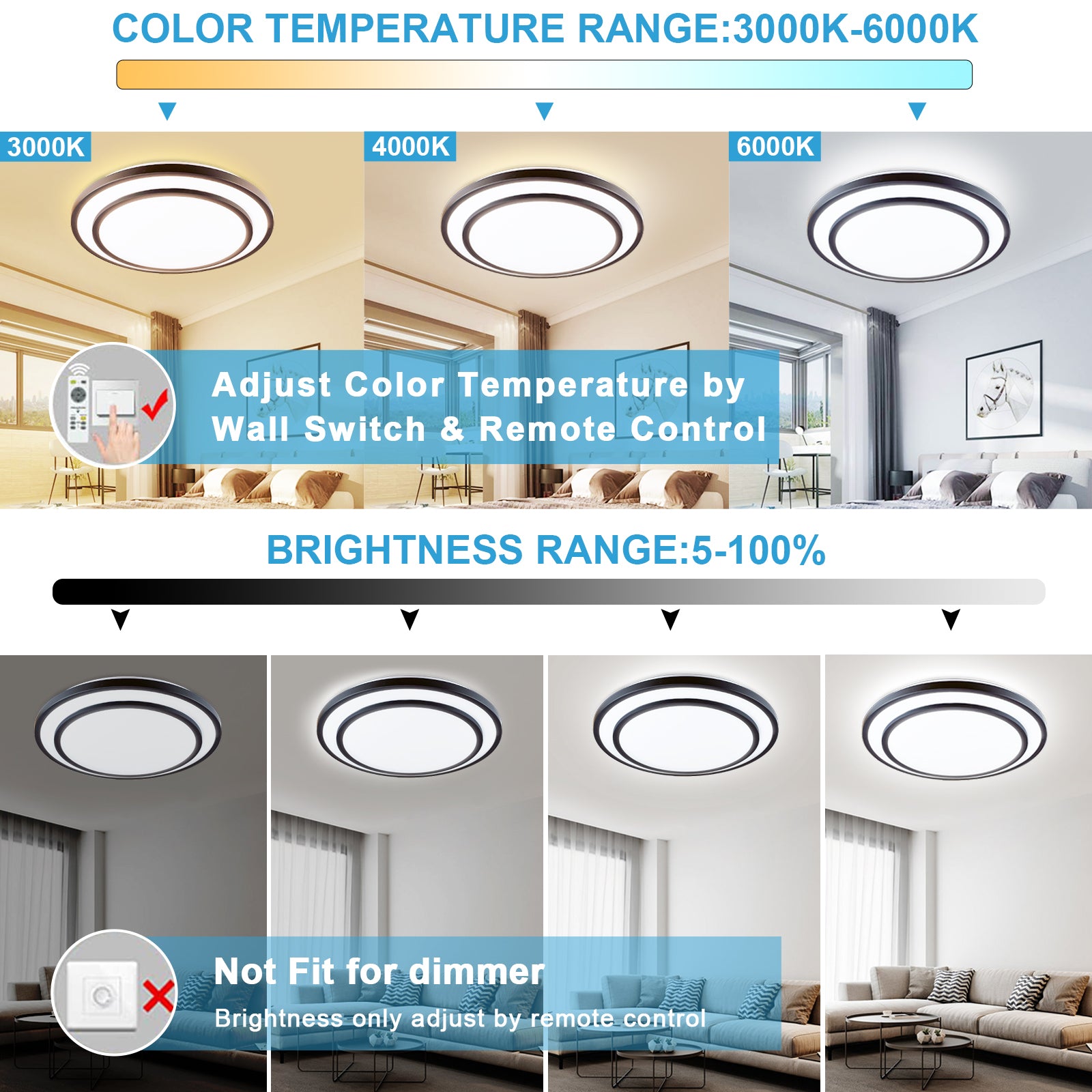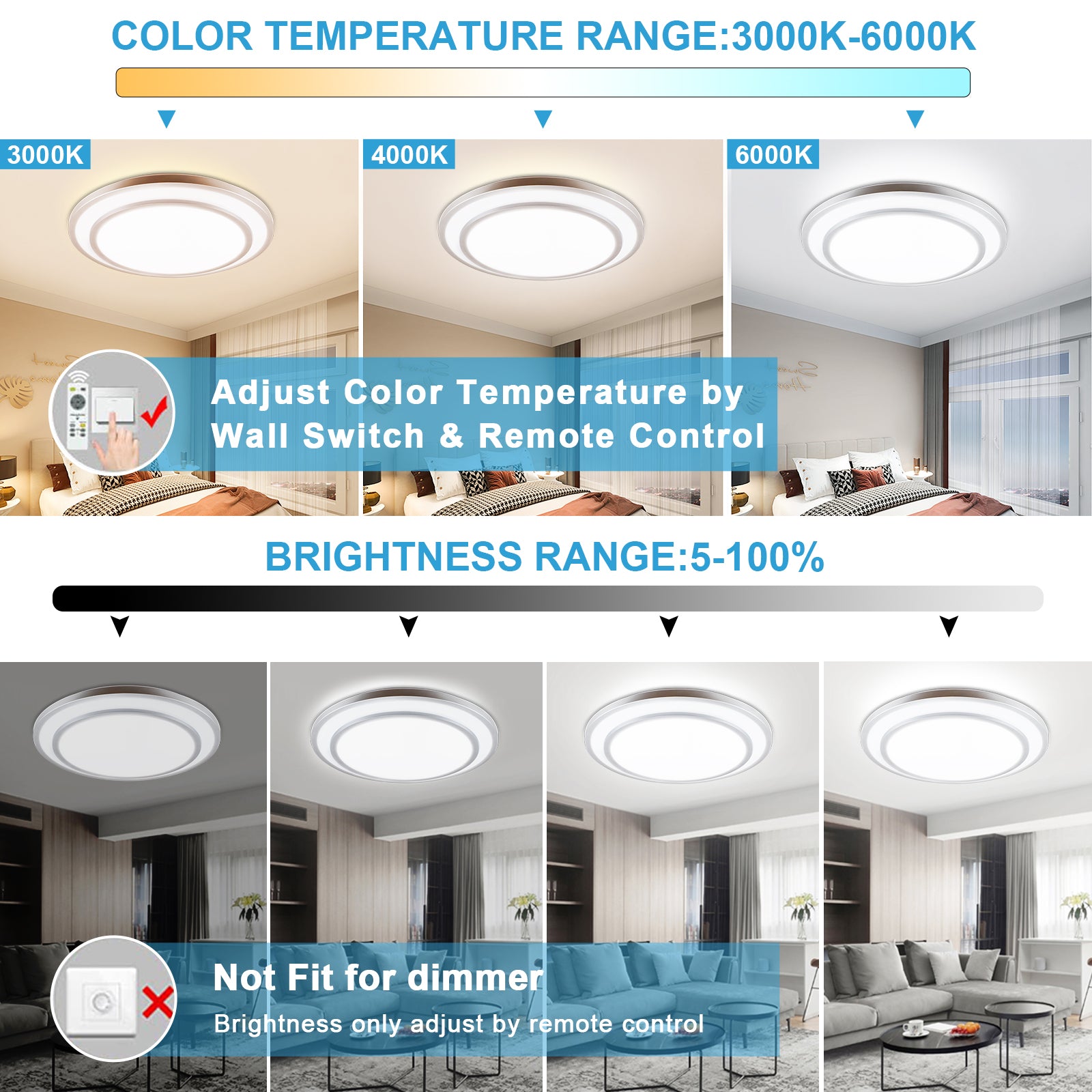 - ★【Dimmable and Color Changeable】: You can choose from three different light color options - natural light, warm light, and white light, with a range of 3000K, 4000K, or 6000K. The light can be dimmed from from dark to bright to brightness (5% to 100% dimming) as per the requirement of different scenes. Enjoy the perfect light for any occasion with this versatile and energy-efficient ceiling light fixture.