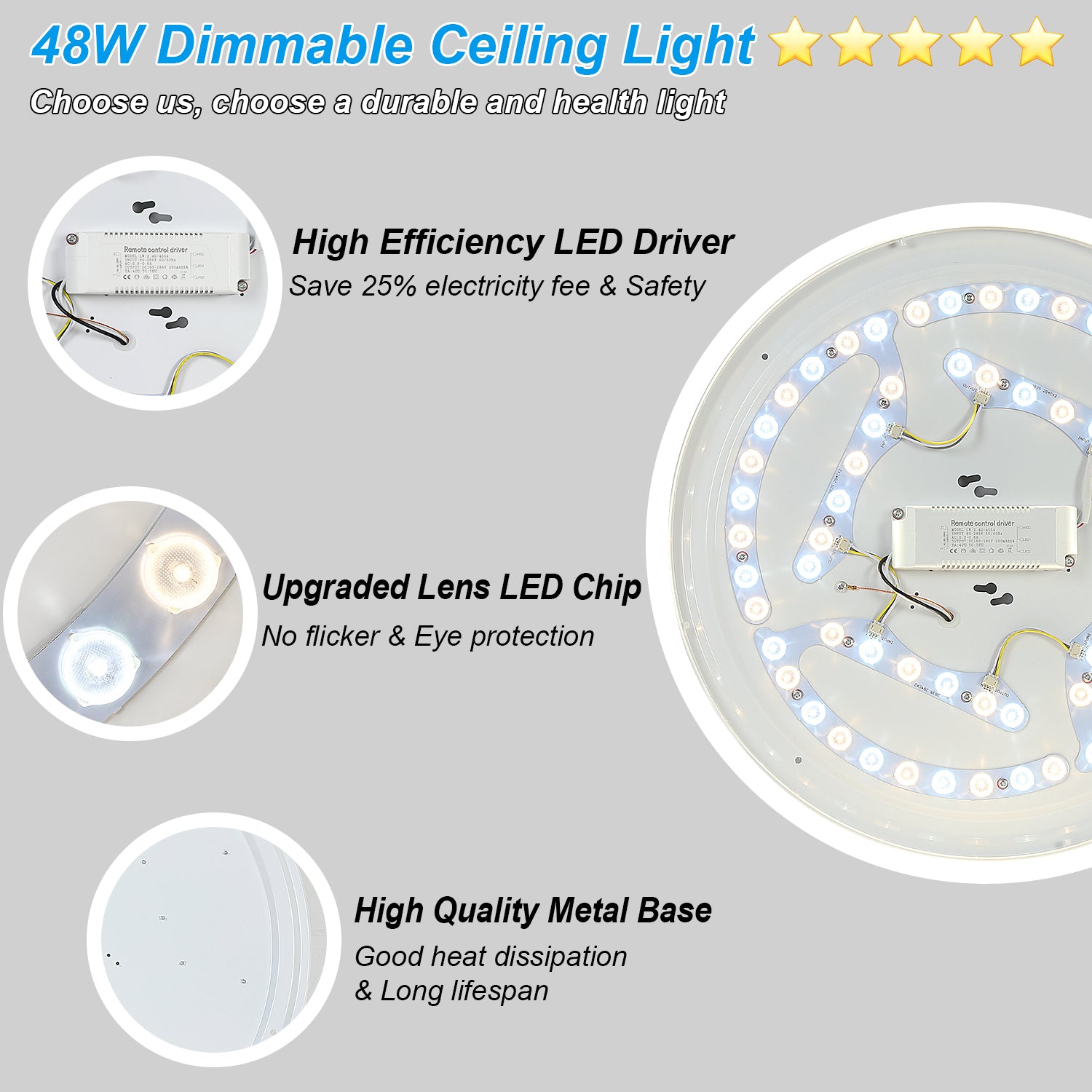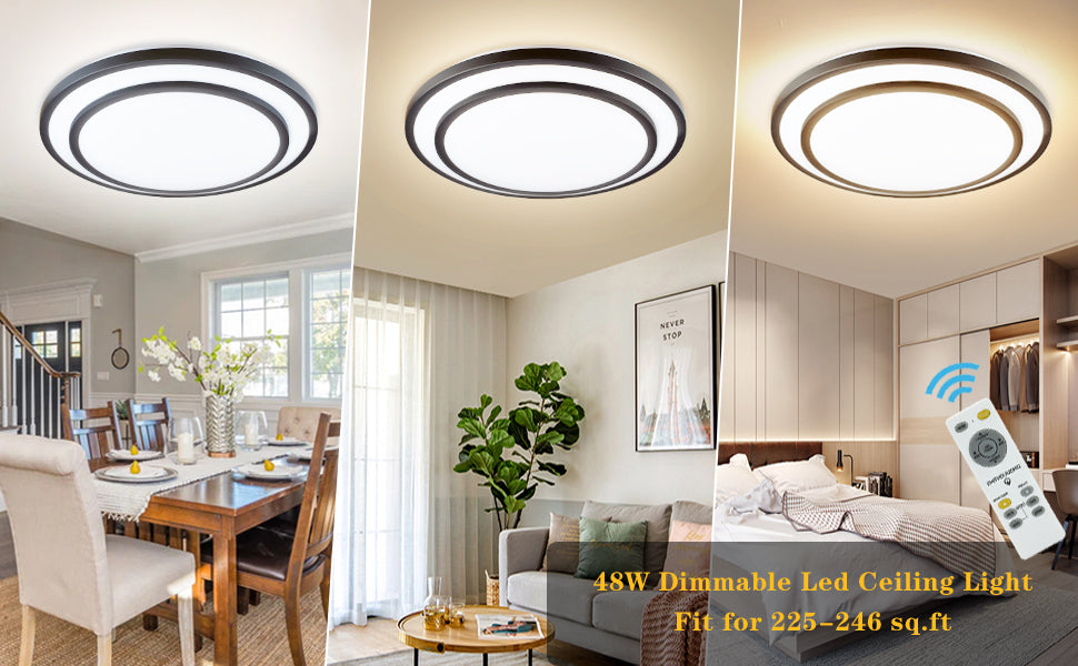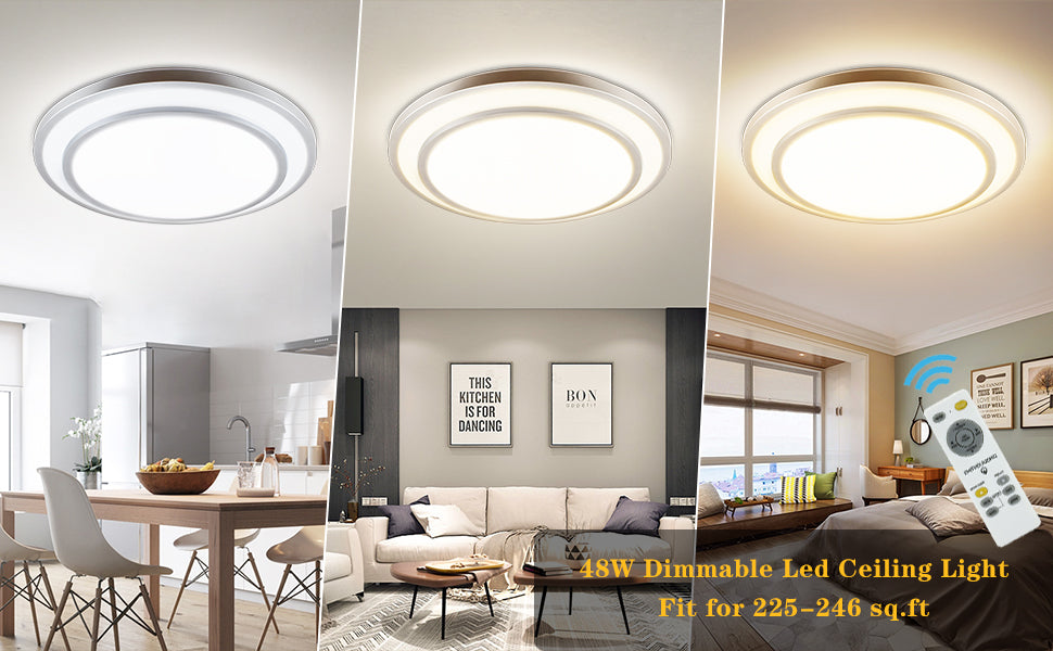 - ★【Super Brightness】: 48W, 2800-3840 lumen, 225~246(sq. ft) perfect choice for kitchen-led ceiling lights and led living room ceiling lights.