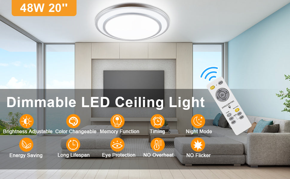 DLLT 48W LED Flush Mount Ceiling Lighting,Dimmable Ceiling Lights with Remote Control for Living Room/Bedroom/Hallway/Office, 3000-6000K, Silver/Black, Pre-sale