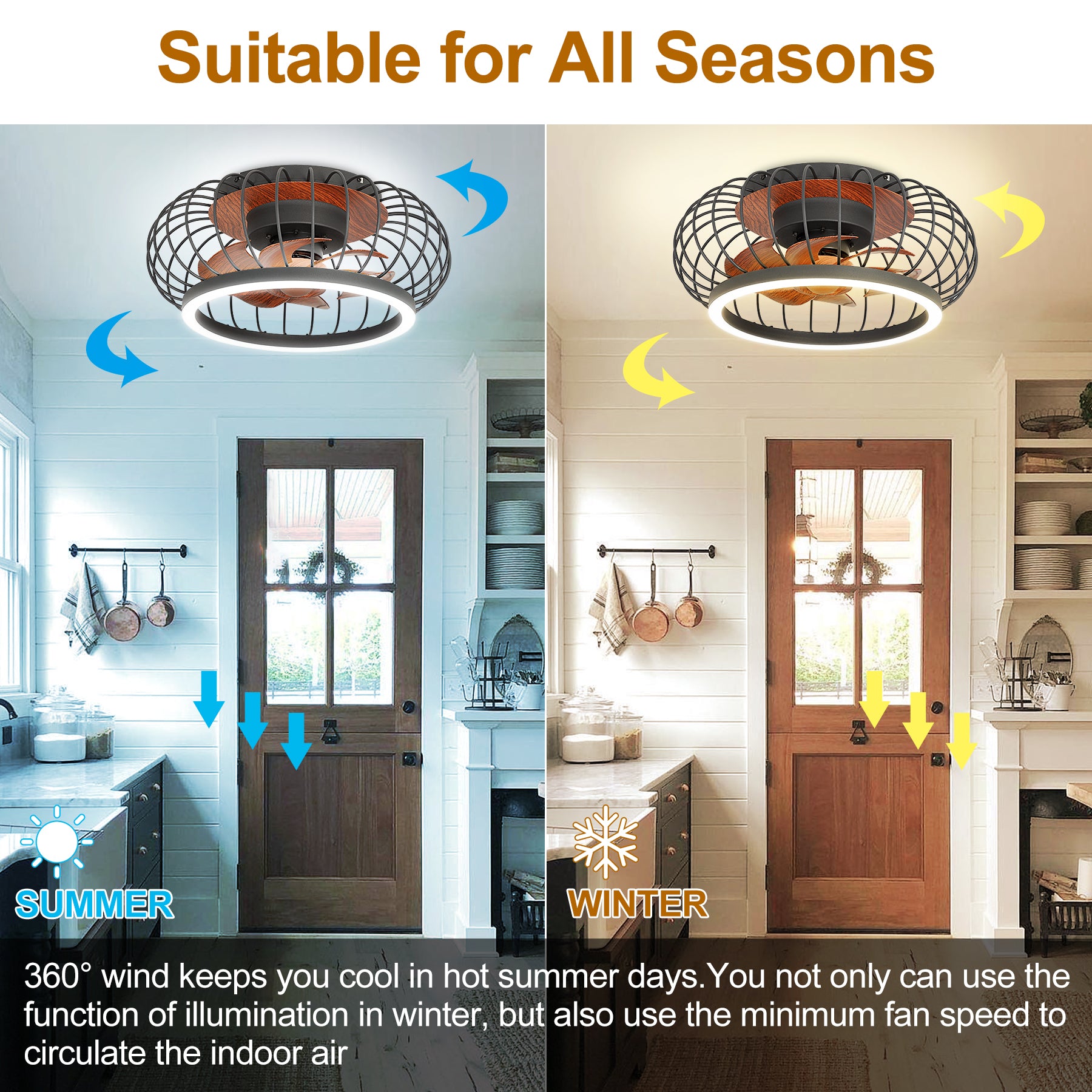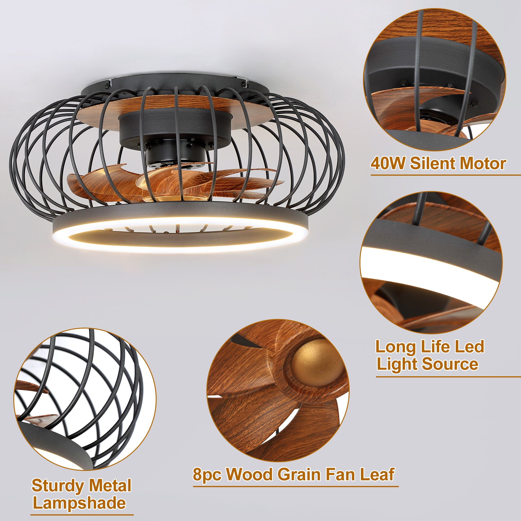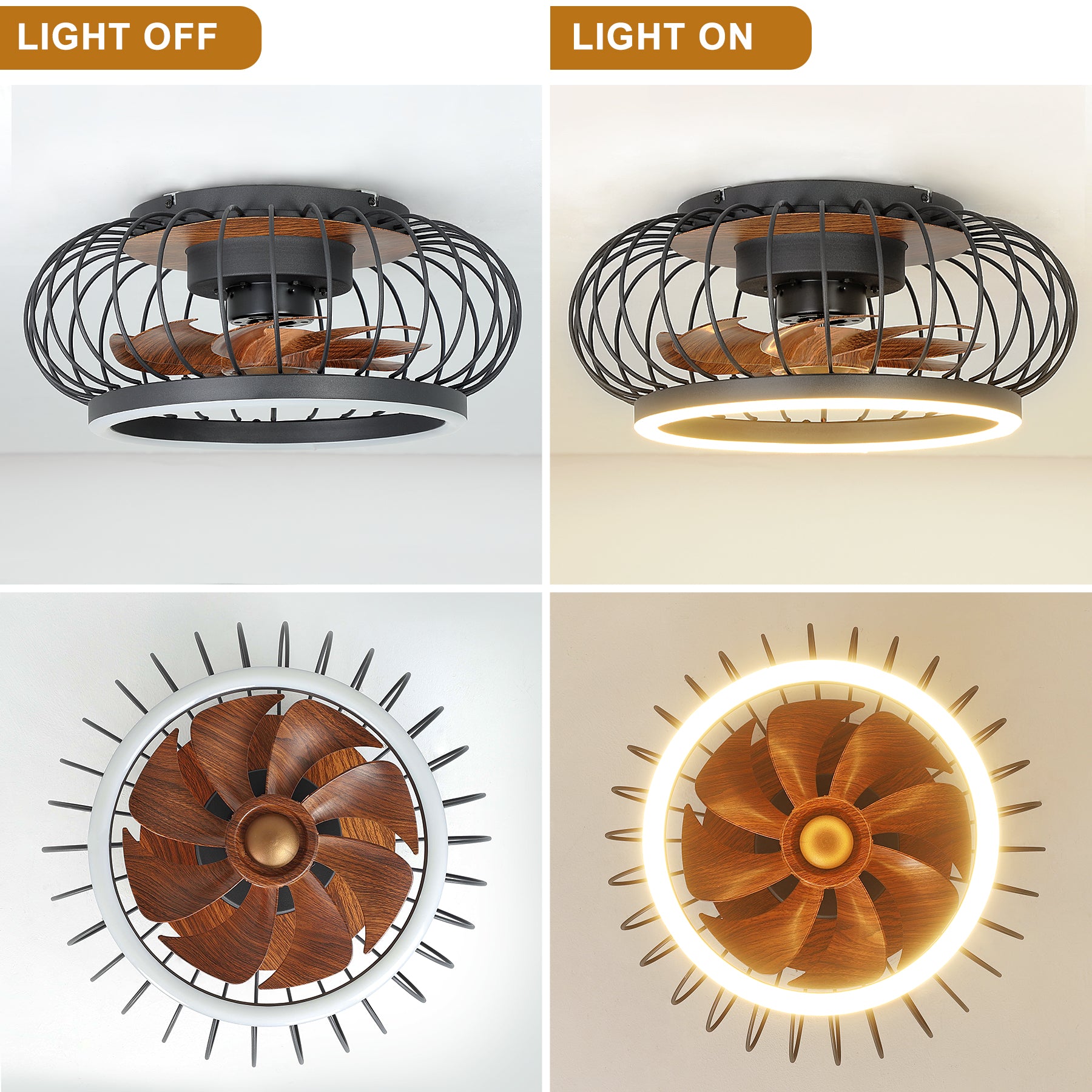 - 【Häkillä varustettu matalaprofiilinen kattotuuletin】Pieni häkkikattotuuletin kaukosäätimellä ja 8 puolisuljettua puunsyyterää pitävät huoneesi tyylikkäänä ja tyylikkäänä. Täydellinen muotoilu pieniin tai keskikokoisiin huoneisiin, joissa on korkea ja matala katto, kuten makuuhuone, olohuone, ruokasali, keittiö tai mikä tahansa sisätila.