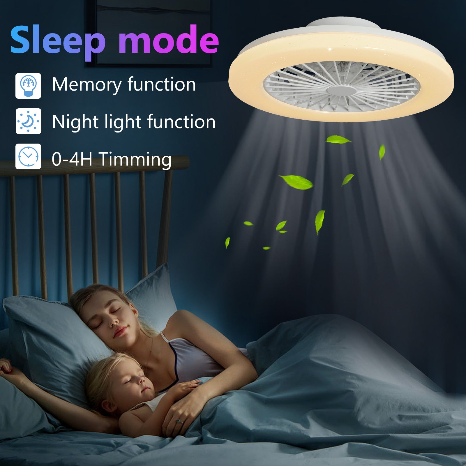 - Ääniohjaus ja muistitila – Kun yhdistät sen Amazon Alexaan tai Google Assistantiin, voit ohjata uppoasennettavia kattotuulettimia valoilla käyttämällä yksinkertaisia äänikomentoja. Vapauta kätesi ja nauti olostasi helpommin. Viimeksi käytetty värilämpötila ja kirkkaus pysyvät ennallaan.