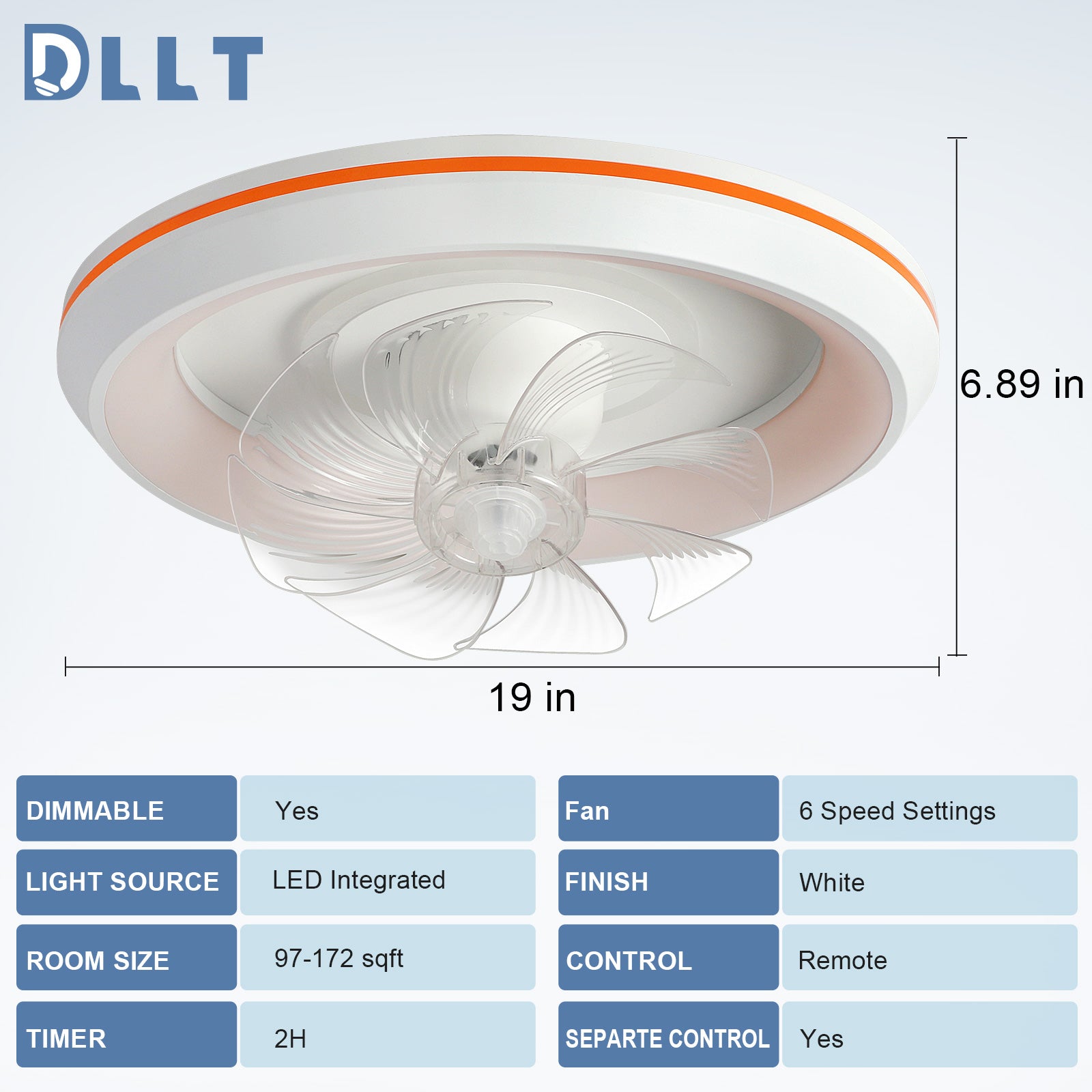 - �Tyylikäs ja turvallinen muotoilu: DLLT-moderni kattotuuletinvalaisimessa on ainutlaatuinen, lautasen kaltainen ulkonäkö ja se on varustettu 7-ABS-siivellä, joka takaa vahvan ja äänettömän ilmavirran.