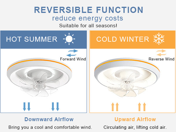 - �Kaksi kiertotilaa: Kattotuulettimen valossa on käännettävä tuulen suunta, jota voidaan käyttää ilmavirran kierrättämiseen talvella ja eteenpäin puhaltamiseen kesällä. Tämä auttaa alentamaan lämpötilaa ja tuomaan viileän tuulen, joten se sopii käytettäväksi kaikkina vuodenaikoina.