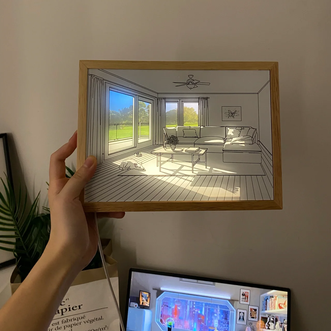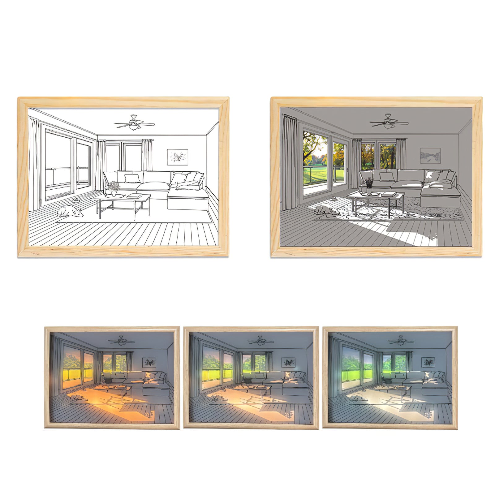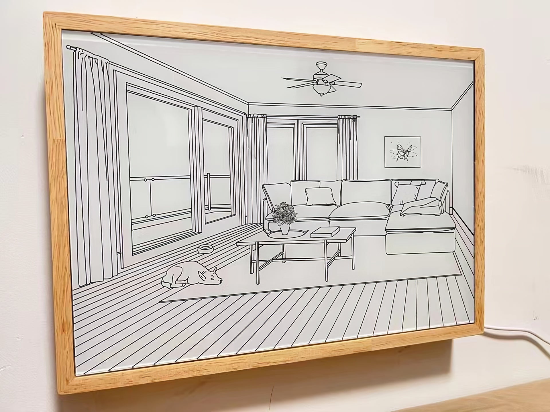 The Dog Sunbathing Mural Art Lamp on kiehtova seinämaalausvalaisin, jossa suloinen koira paistattelee auringossa. Se tarjoaa kolme eri värilämpötilaa, jotka vastaavat varhaista aamua, iltapäivää ja auringonlaskua, joten voit säätää valaistuksen tunnelmaa mieltymystesi mukaan.