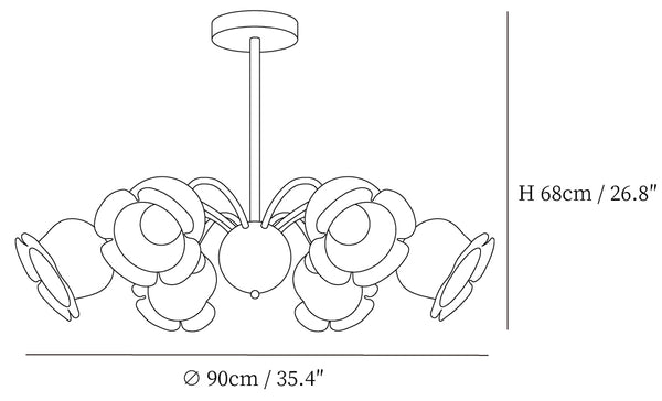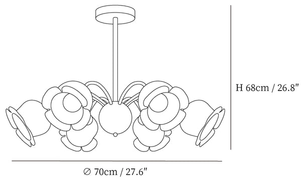 8 päätä Koko: Halkaisija 90 cm x K 68 cm / ∅ 35,4″ x K 26,8″