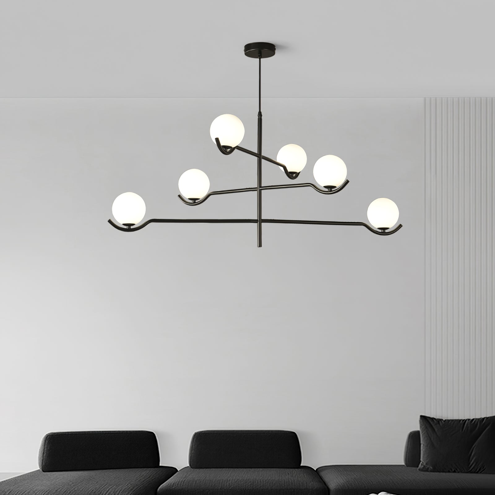 Tässä Doris-kattokruunussa on tyylikäs musta muotoilu ja lasikoriste, jotka tekevät siitä katseenvangitsijan keskipisteen missä tahansa huoneessa. Tyylikäs mutta yksinkertainen muotoilu tuo ajatonta tyyliä mihin tahansa tilaan.