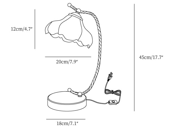 Malli A Koko: Halkaisija 18 cm x K 45 cm / ∅ 7,1" x K 17,7"